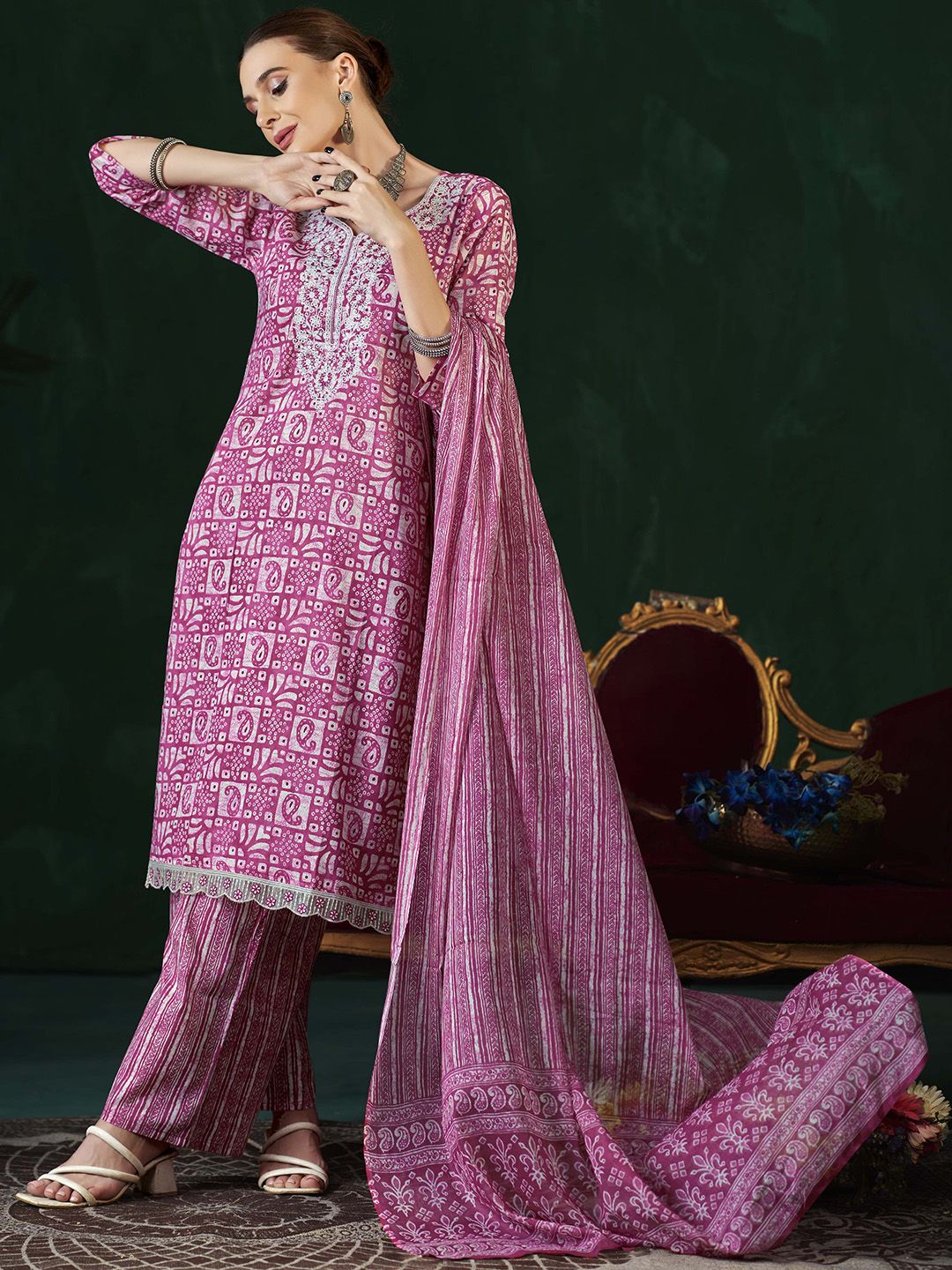 Anouk Ethnic Motif Printed Sweetheart Neck Thread Work Pure Cotton Kurta Palazzo & Dupatta