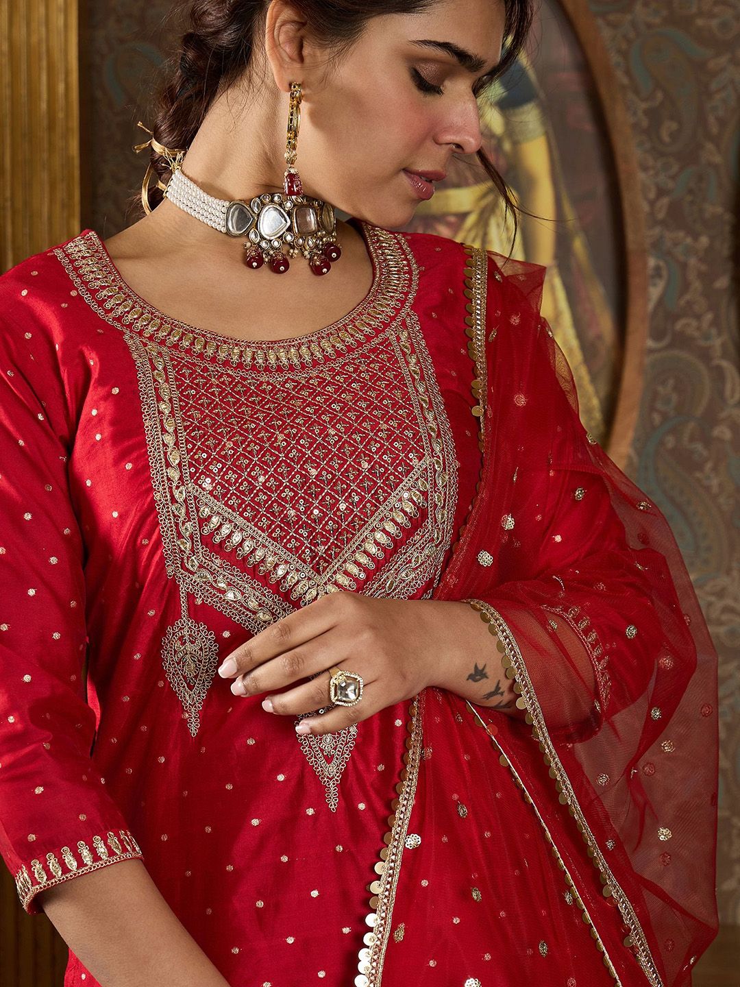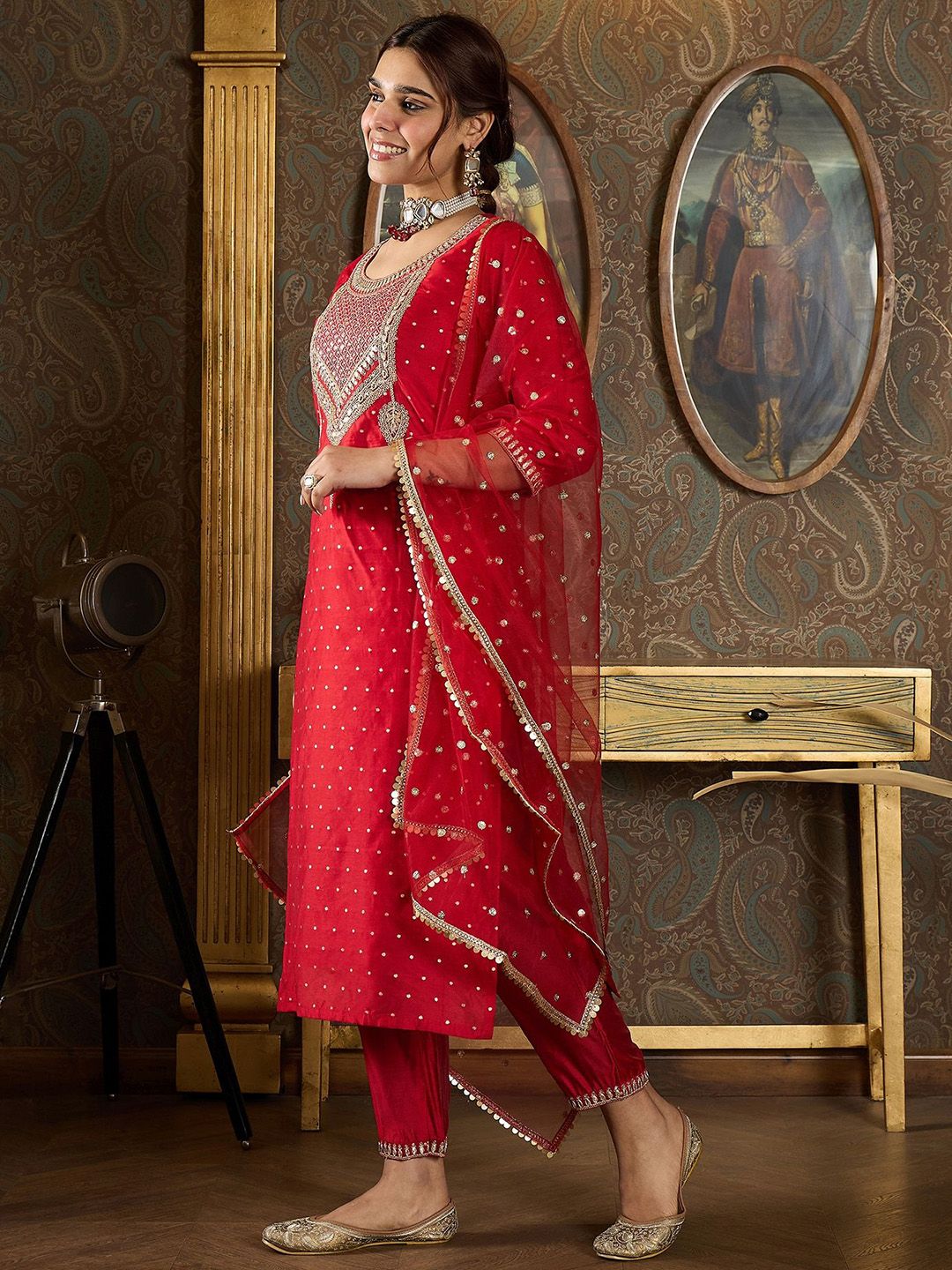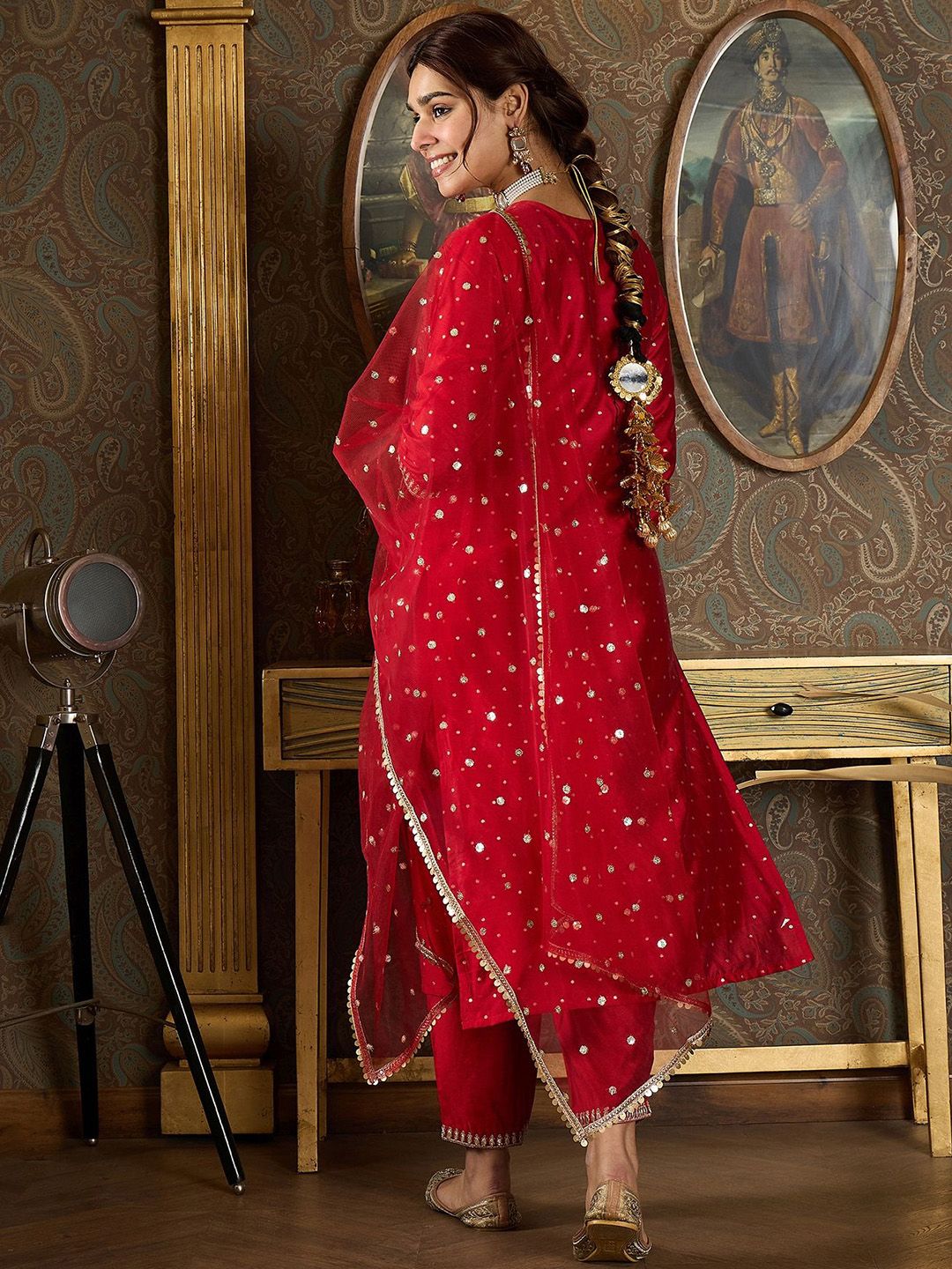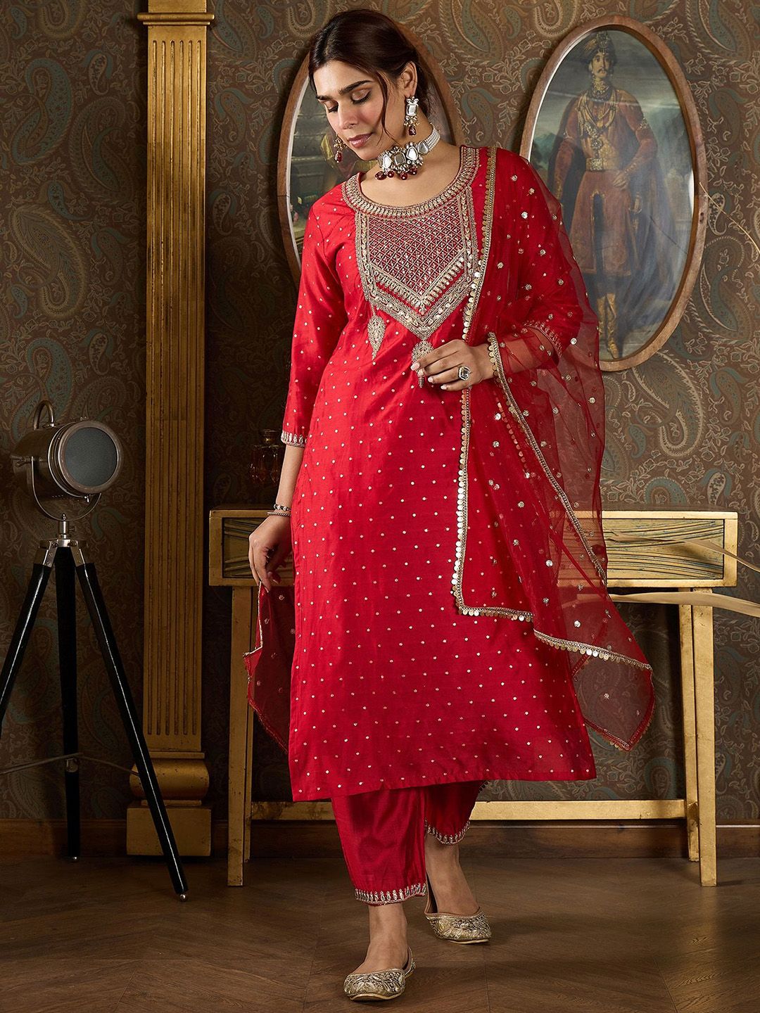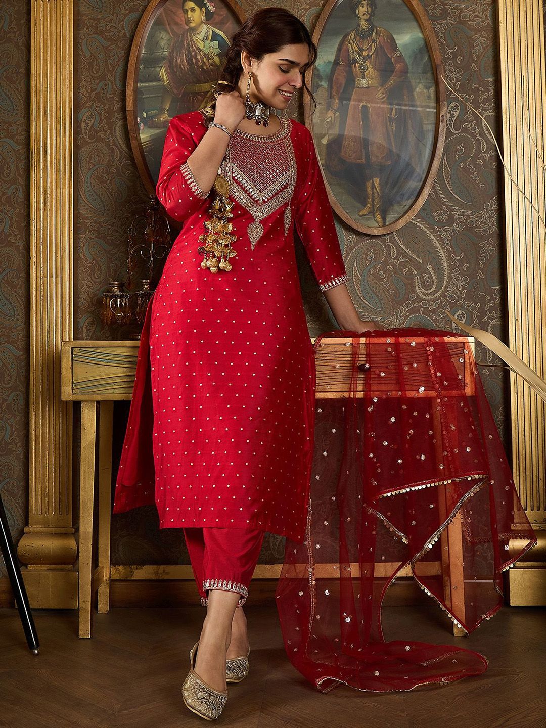 Anouk Ethnic Motifs Embroidered Sequinned Straight Kurta With Trousers & Dupatta