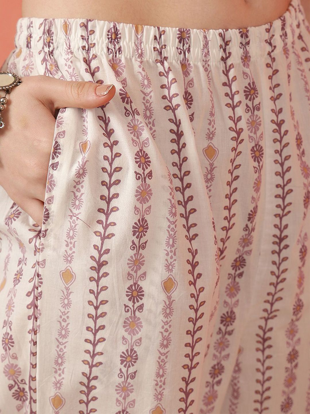 Anouk Ethnic Motifs Printed Pure Cotton Straight Kurta With Trousers & Dupatta