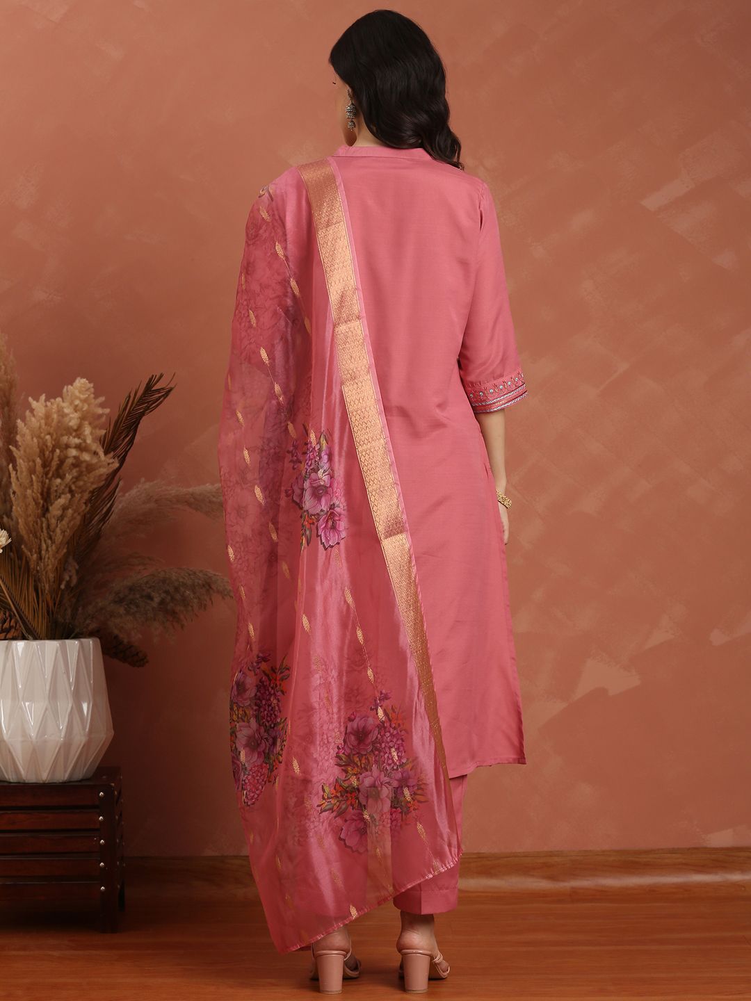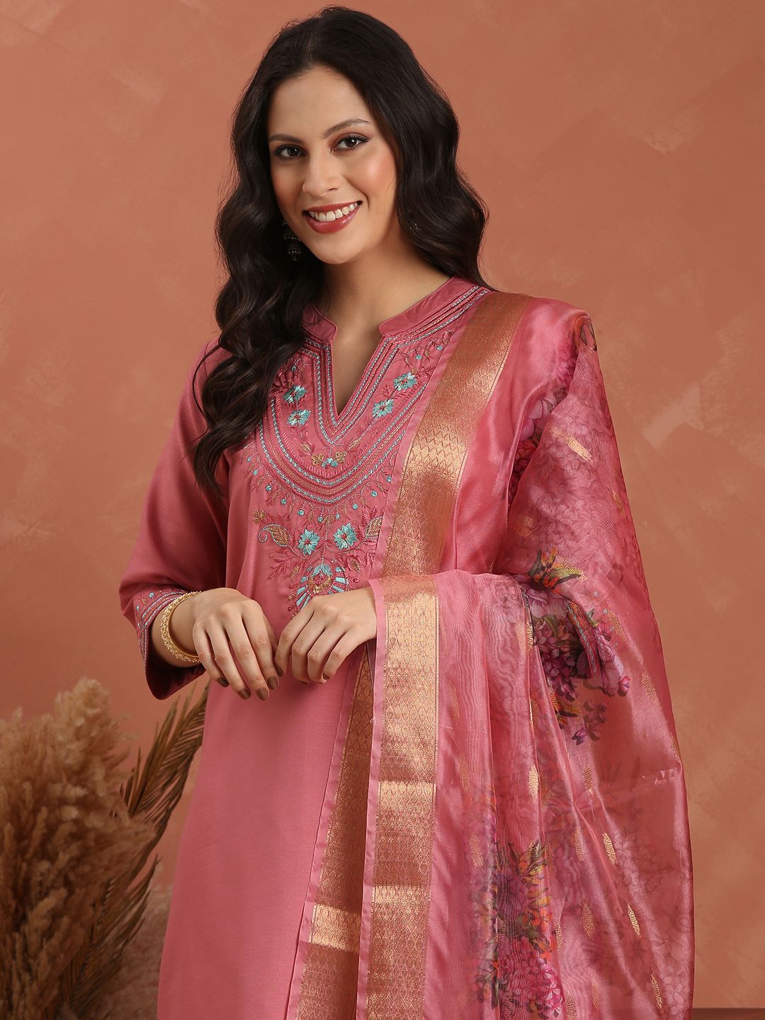 Anouk Floral Embroidered Regular Thread Work Kurta with Trousers & With Dupatta