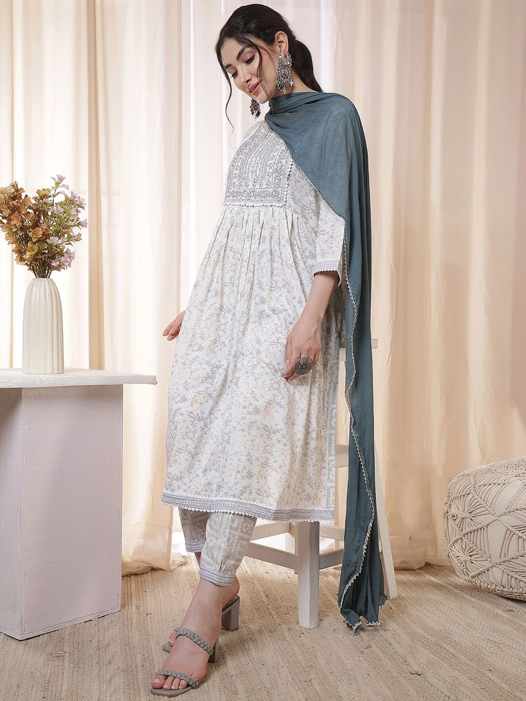 Buy this stylish Anouk Floral Embroidered Round Neck Thread Work Straight Kurta With Trousers & Dupatta at Marincart Nepal. This product offers great quality and value. Perfect for those looking for the latest trends in fashion. Get yours now at unbeatable prices.