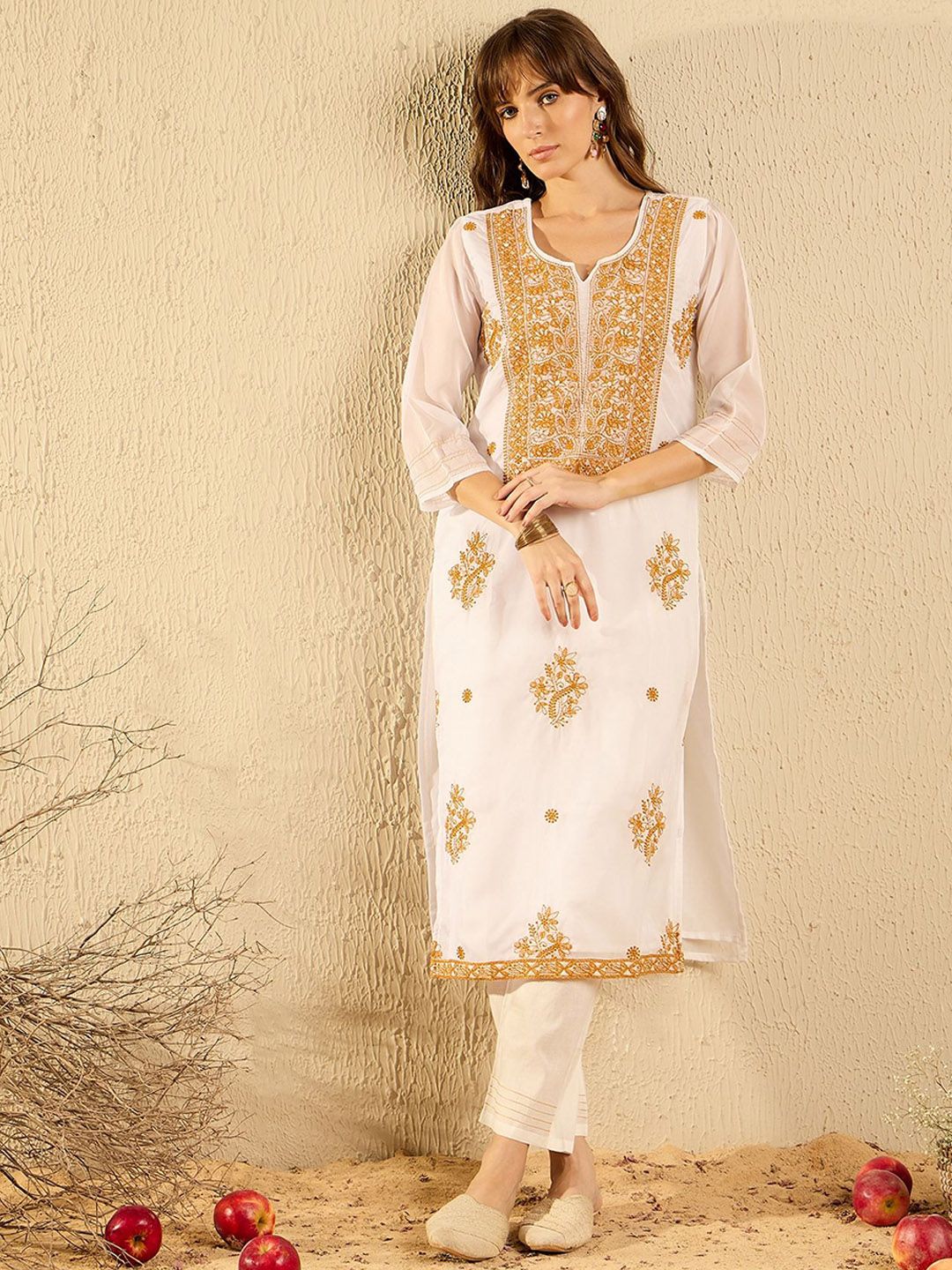 Buy this stylish Anouk Floral Embroidered Straight Thread Work Organza Kurta With Trouser & Dupatta at Marincart Nepal. This product offers great quality and value. Perfect for those looking for the latest trends in fashion. Get yours now at unbeatable prices.