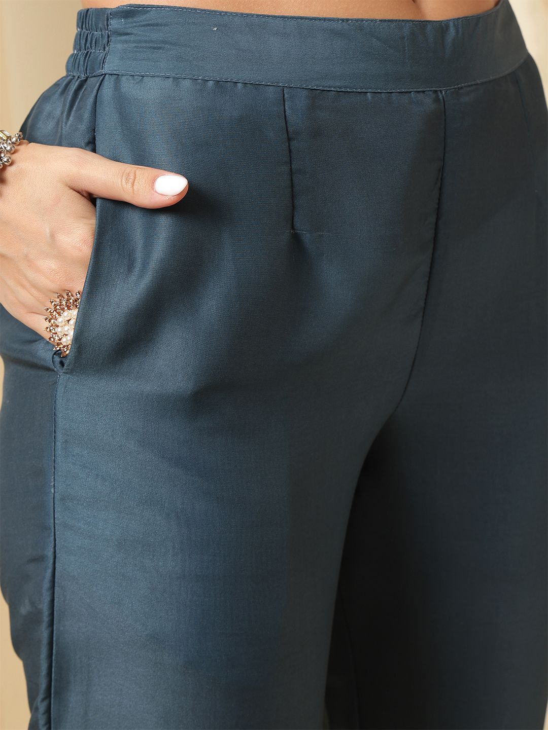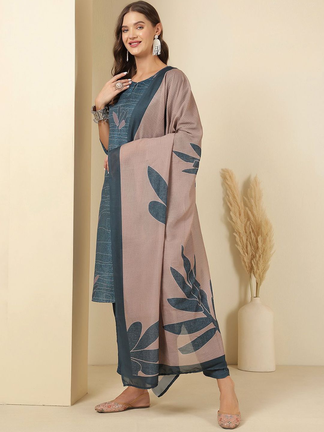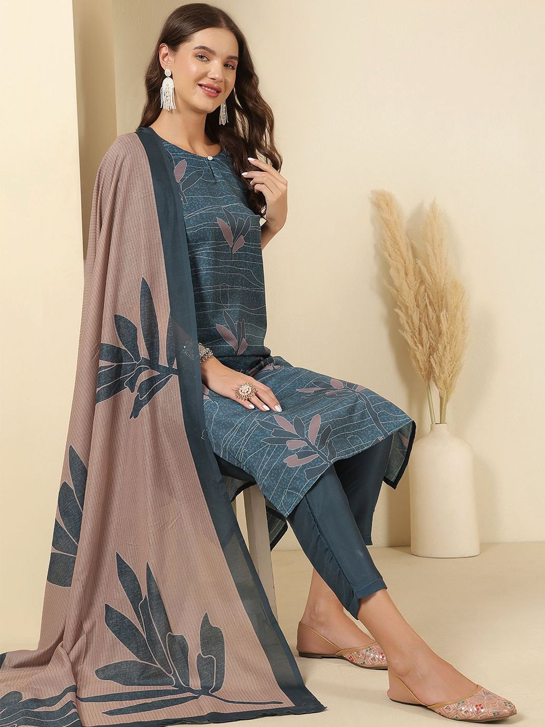 Anouk Floral Printed Keyhole Neck Straight Kurta With Trousers & Dupatta