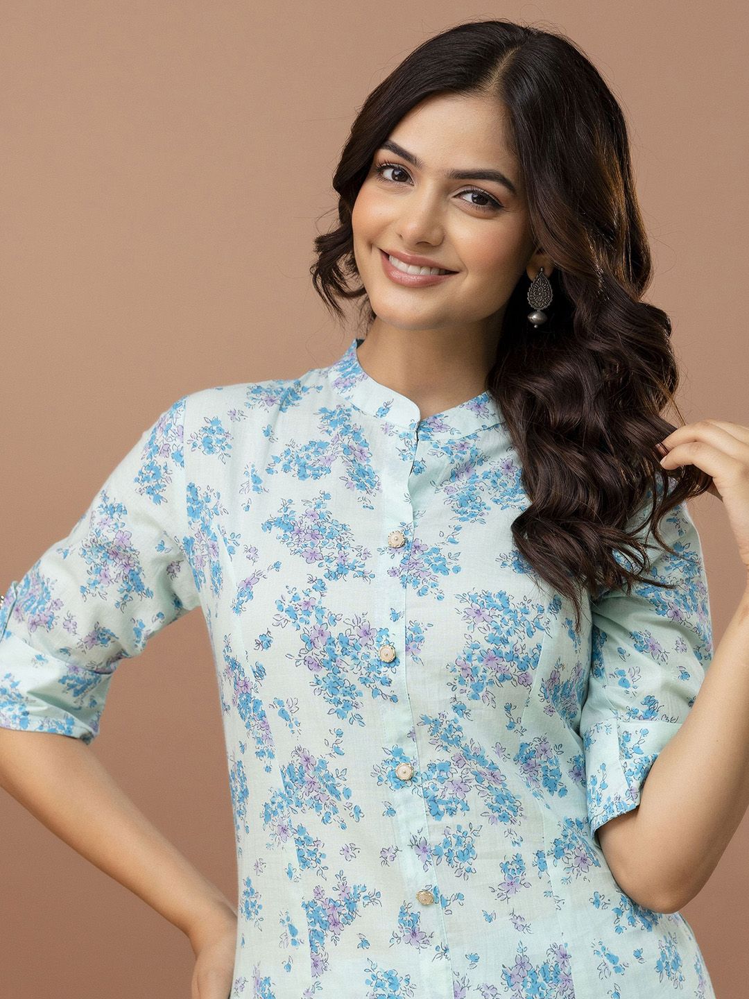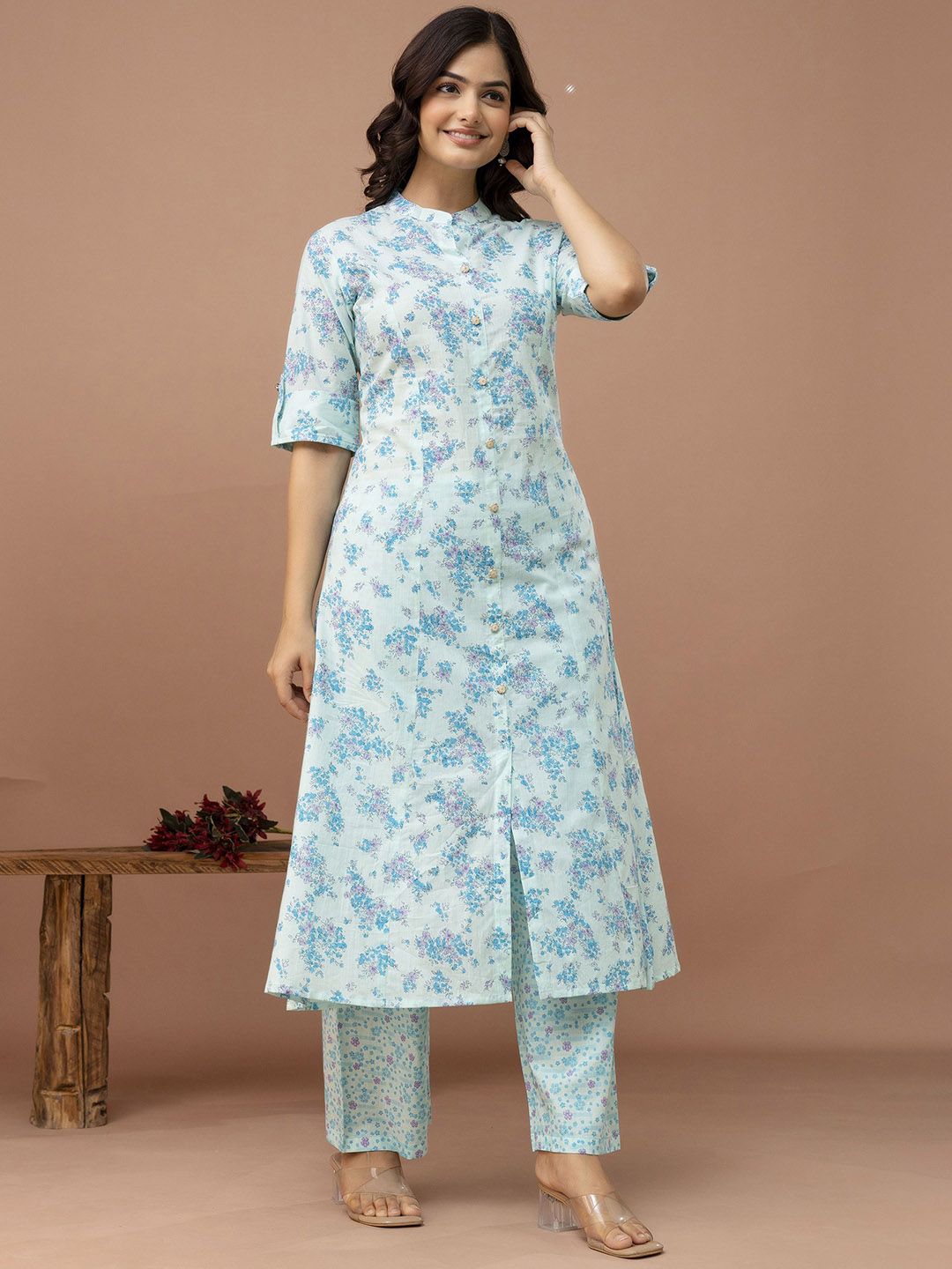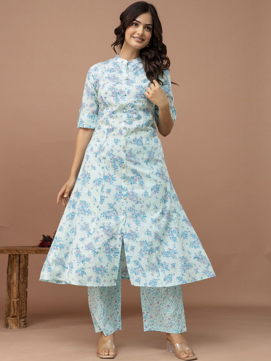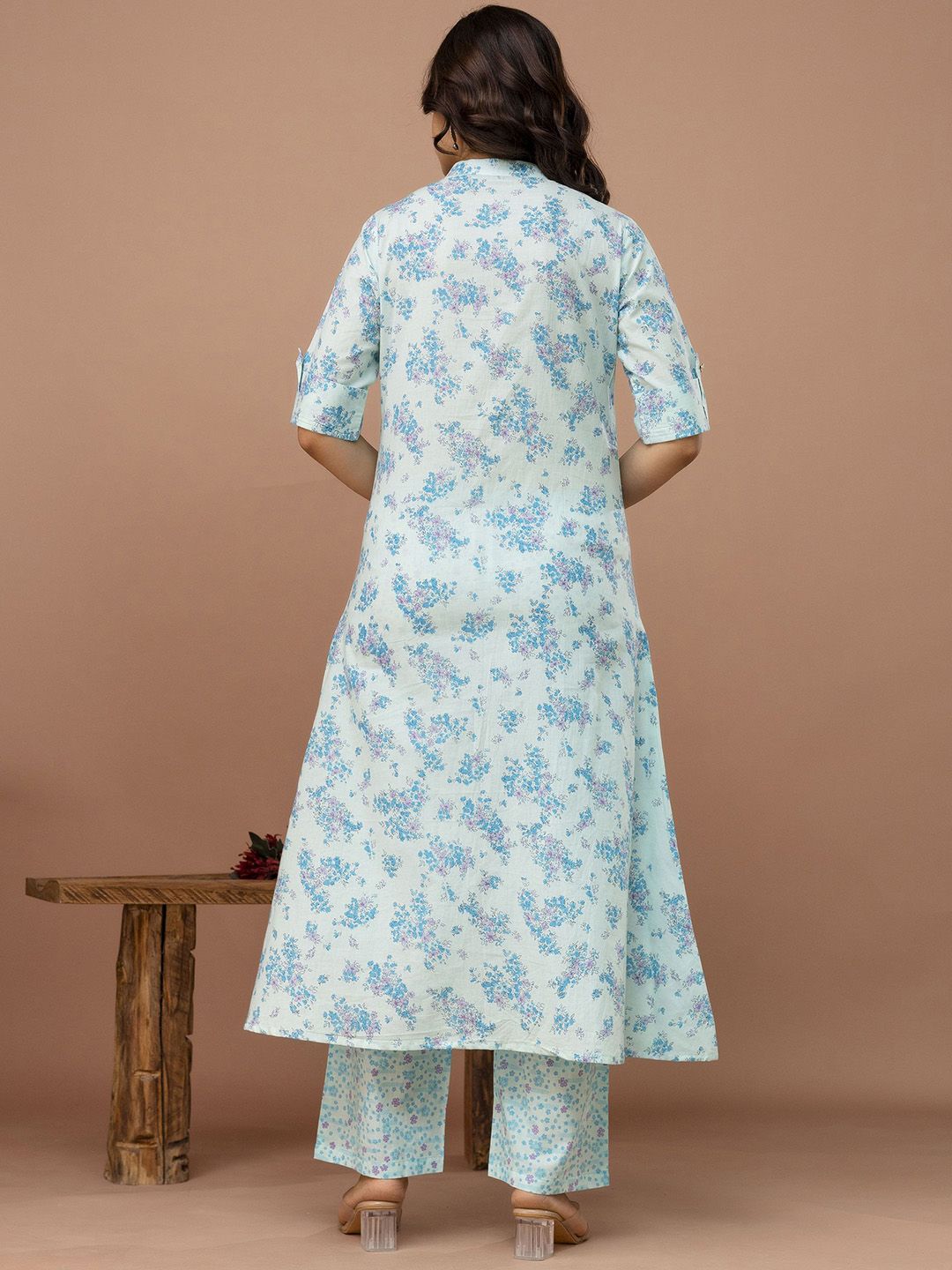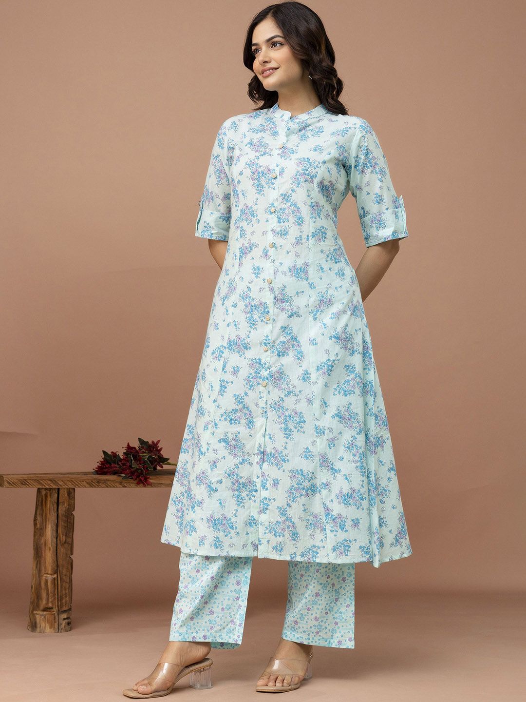 Anouk Floral Printed Mandarin Collar Pure Cotton Kurta with Palazzo