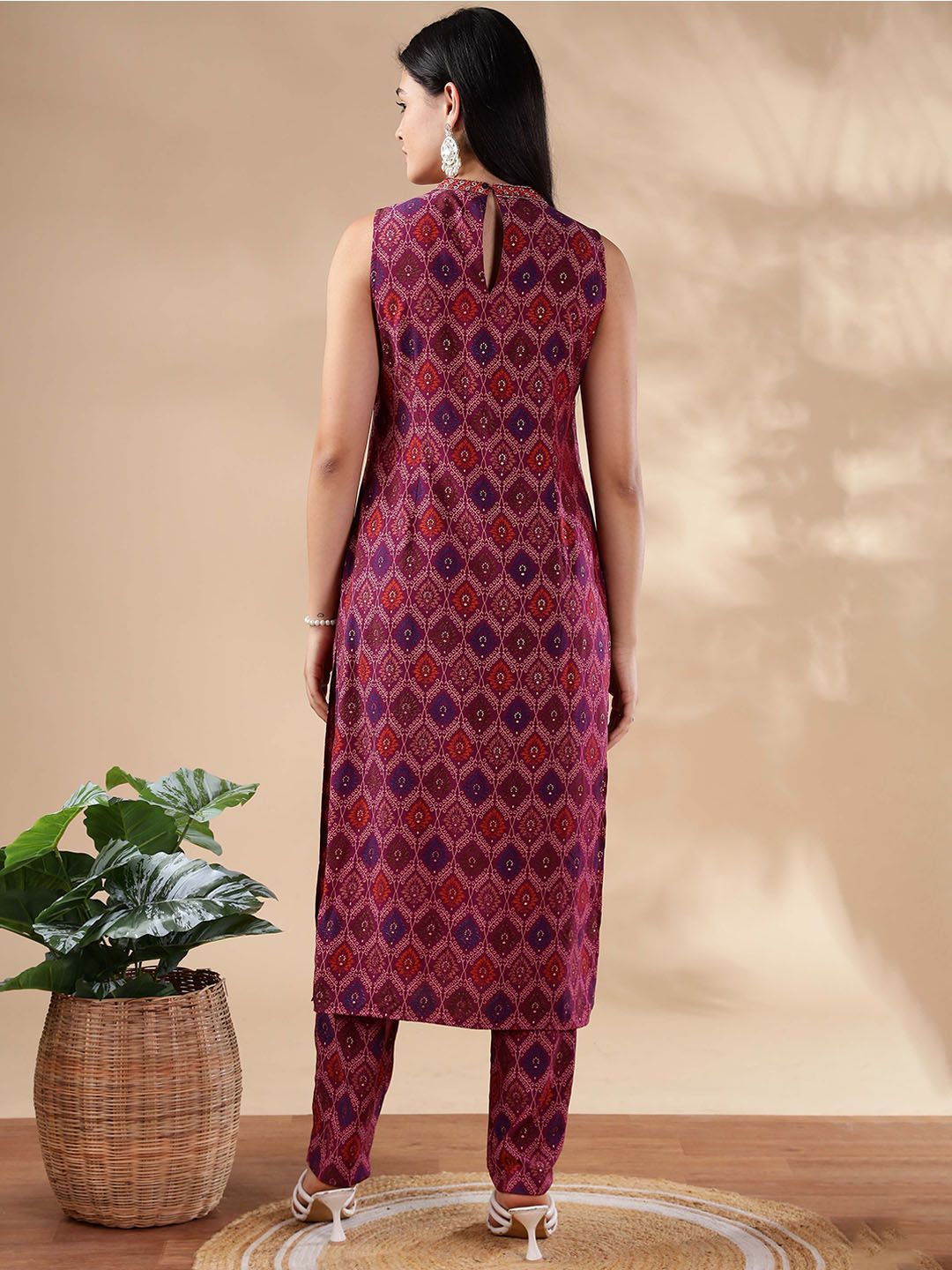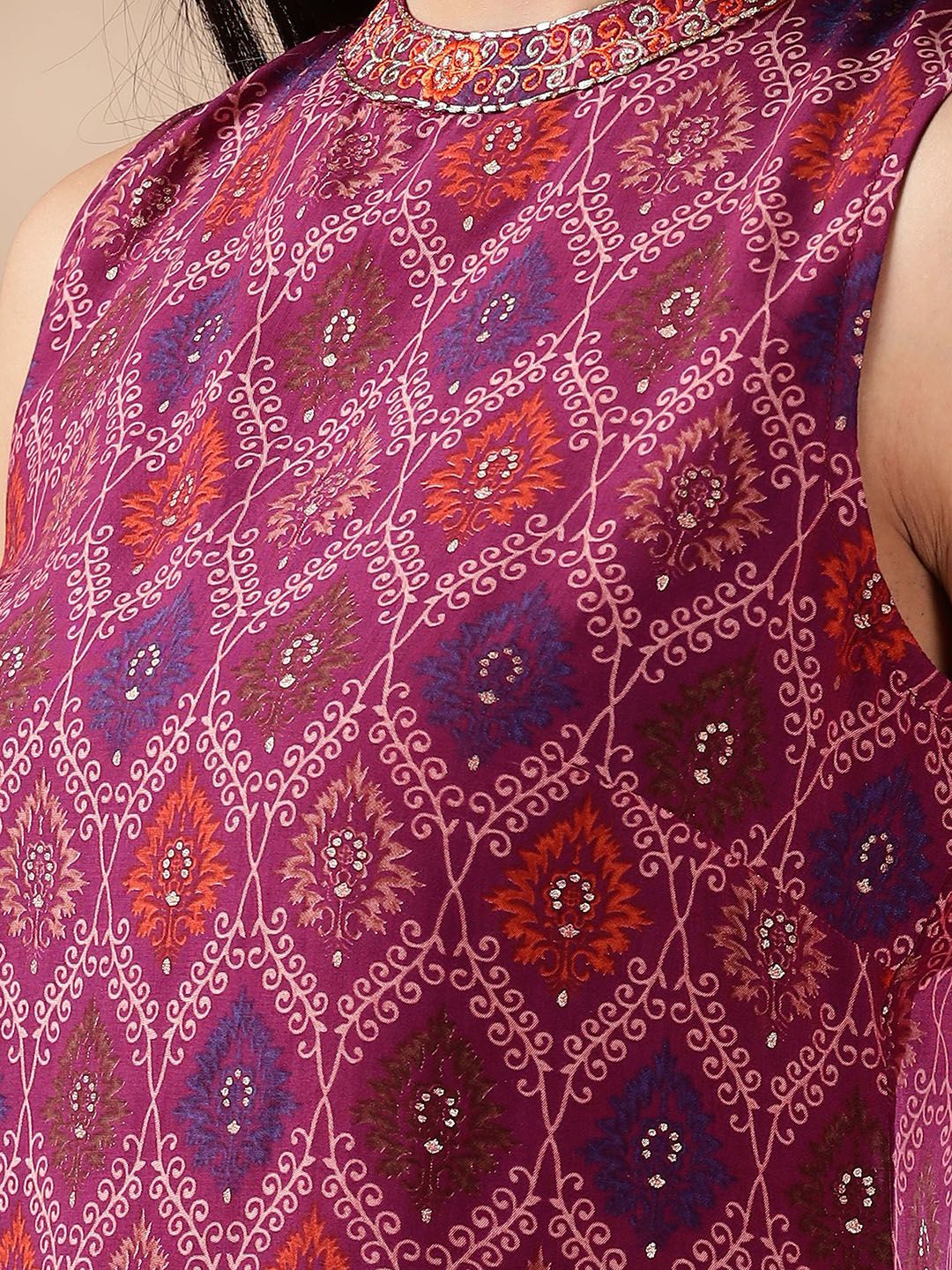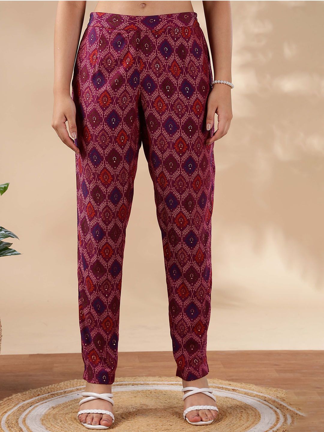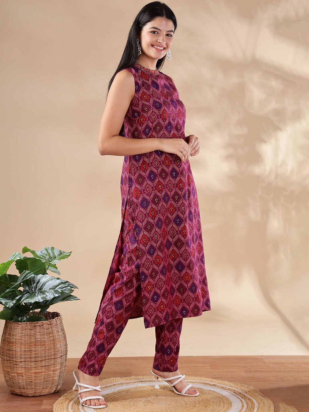 Anouk Floral Printed Round Neck Pure Cotton Straight Kurta With Trousers