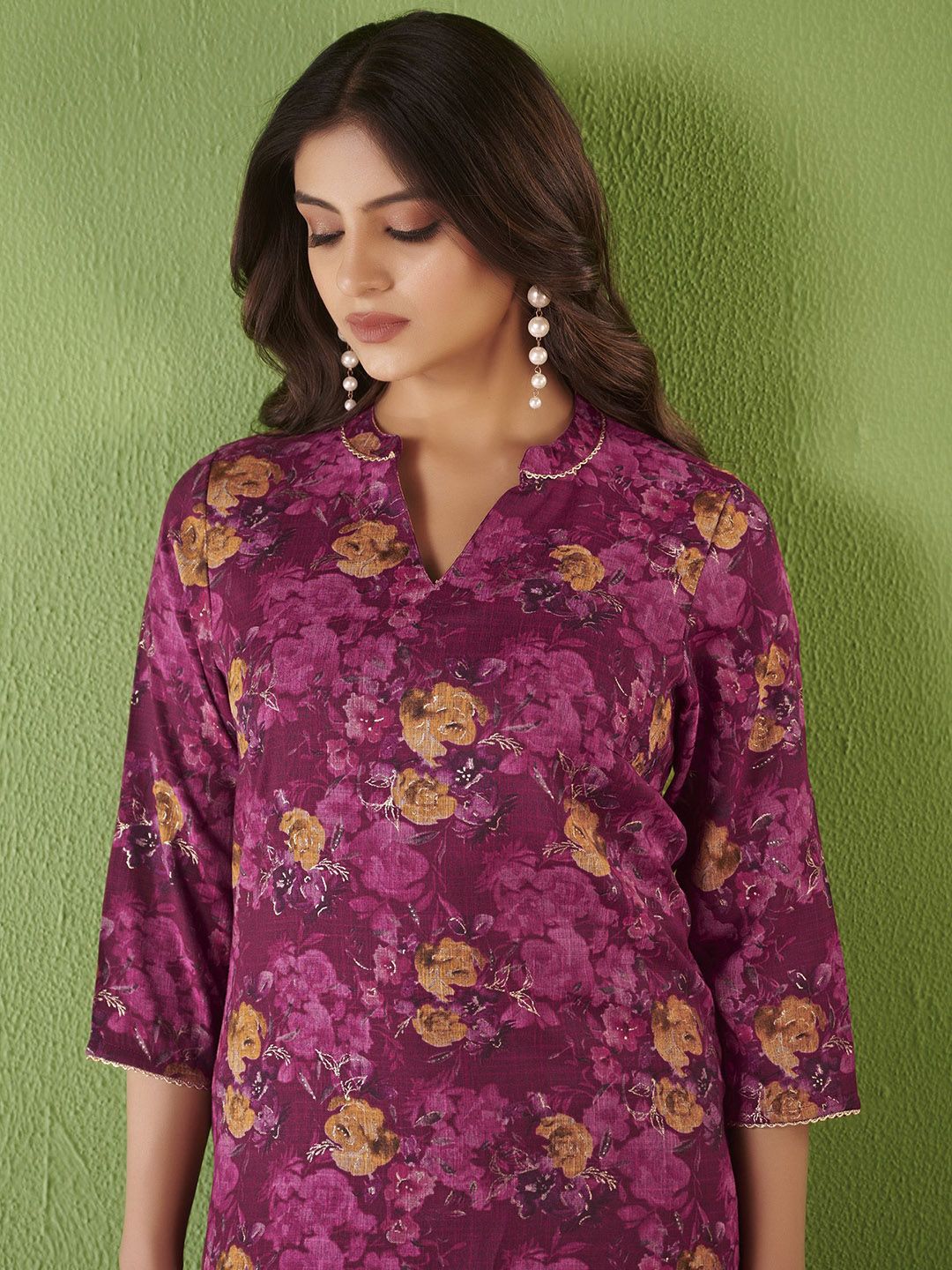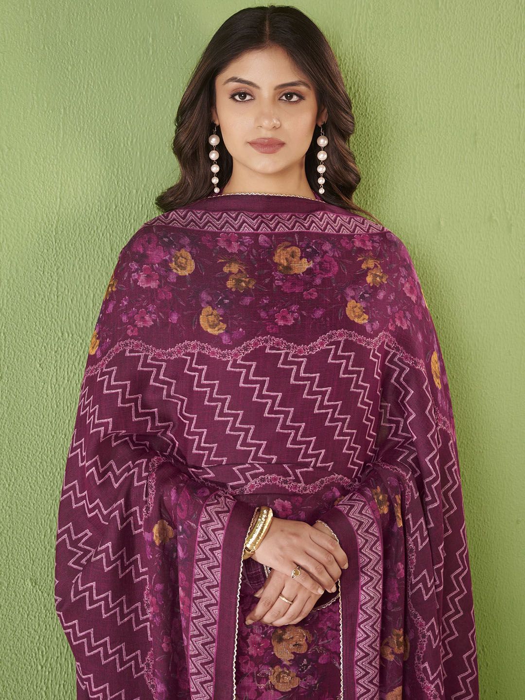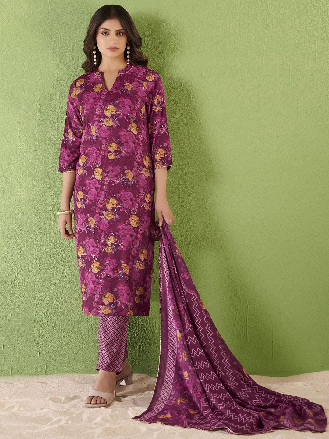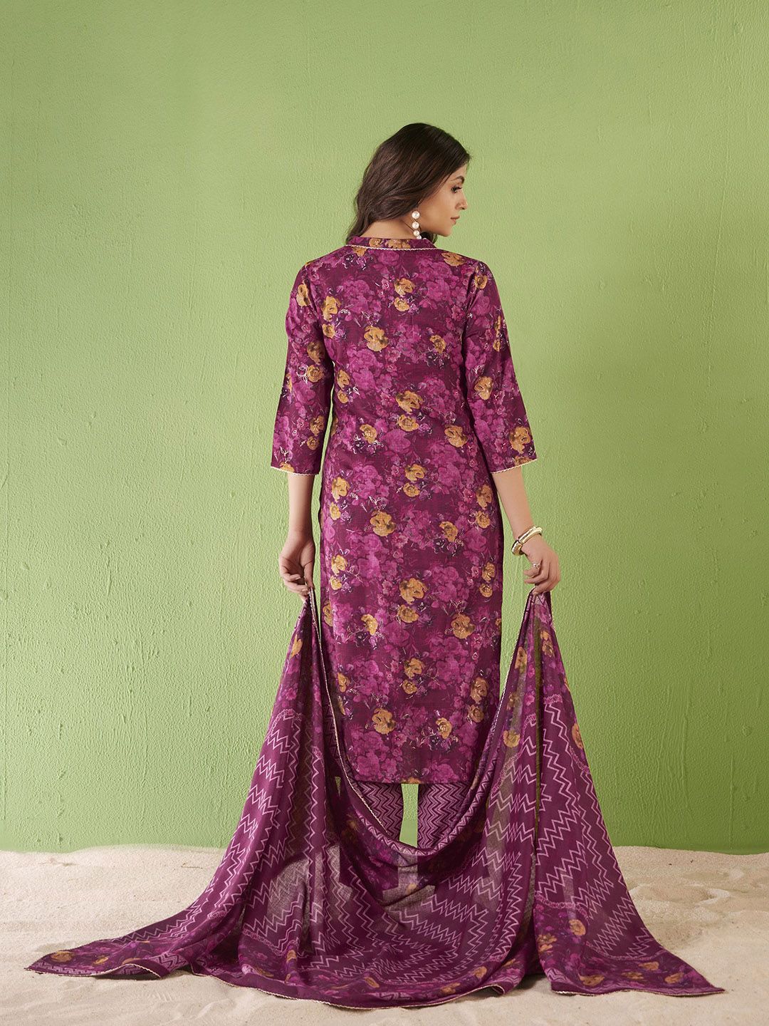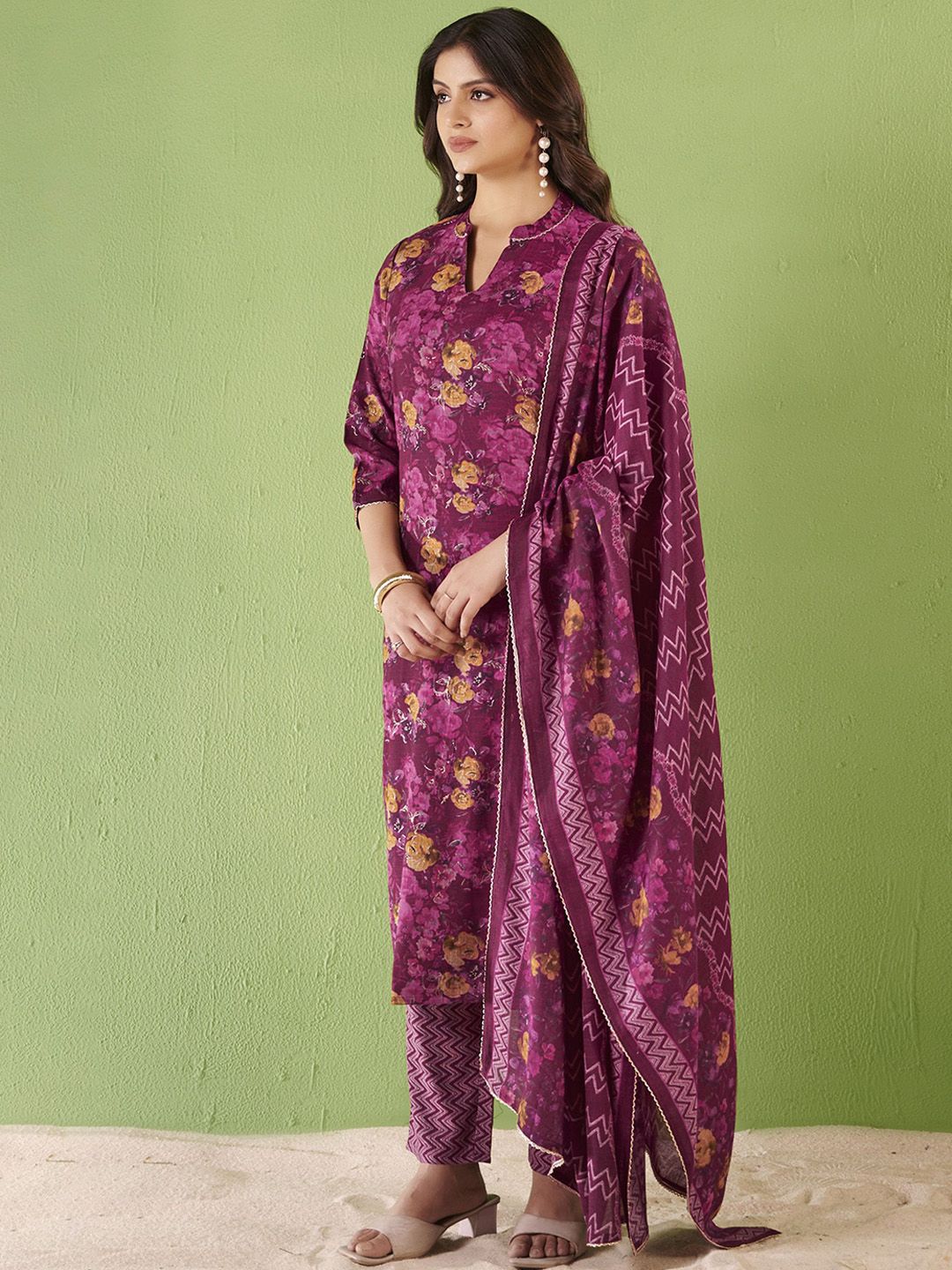 Anouk Floral Printed Straight Kurta With Trouser & Dupatta