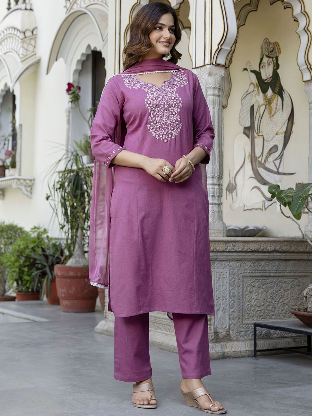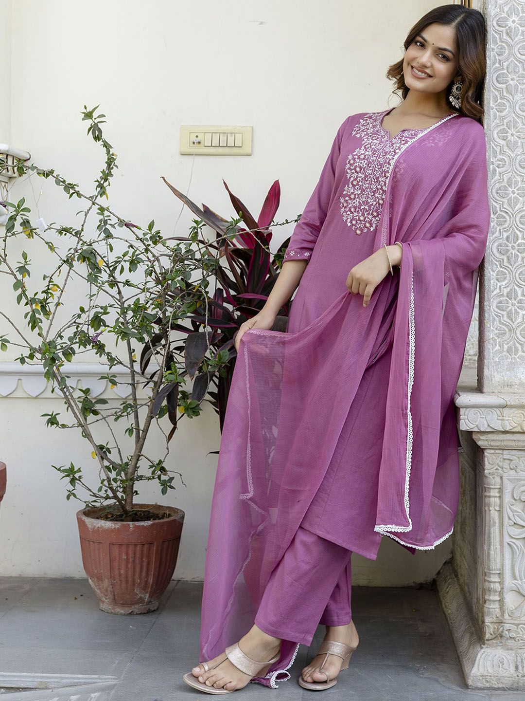 Anouk Floral Yoke Design Pure Cotton Kurta with Trousers & Dupatta
