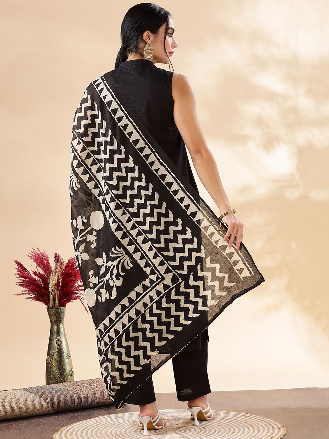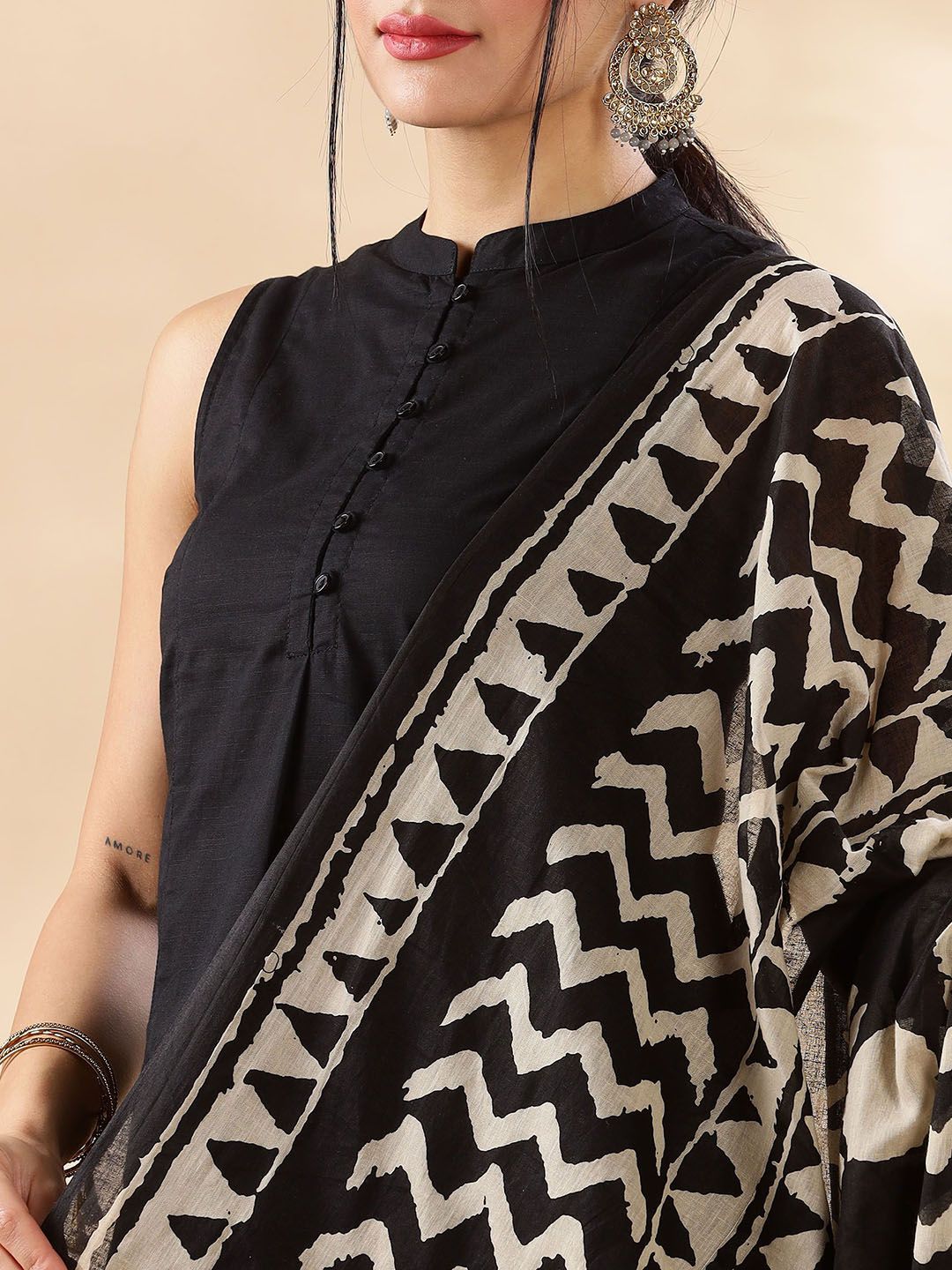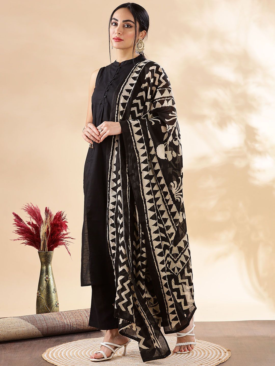 Anouk Mandarin Collar Pure Cotton A-Line Kurta With Palazzos & Dupatta