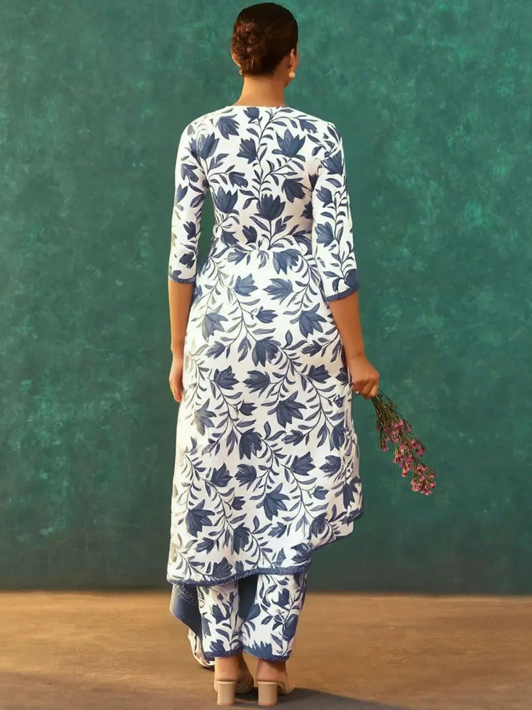 Anouk Rustic Ethnic Motifs Printed Square Neck A-Line Kurta With Trousers & Dupatta
