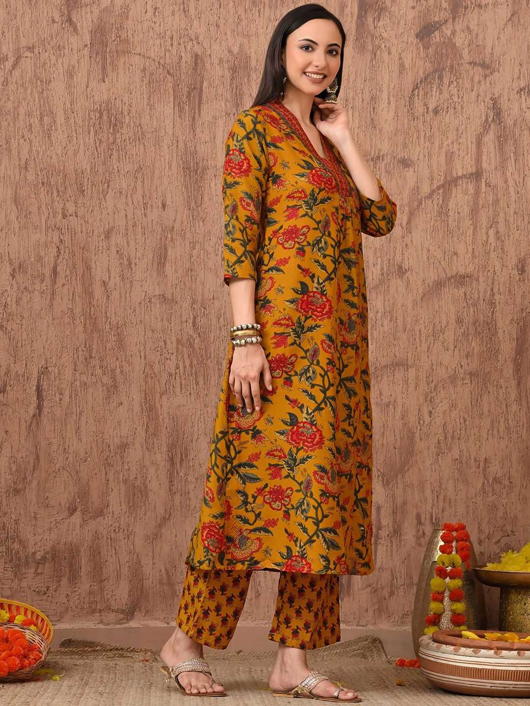 Buy this stylish Anouk Rustic Floral Printed Pleated V-Neck A-Line Kurta With Trousers & Dupatta at Marincart Nepal. This product offers great quality and value. Perfect for those looking for the latest trends in fashion. Get yours now at unbeatable prices.