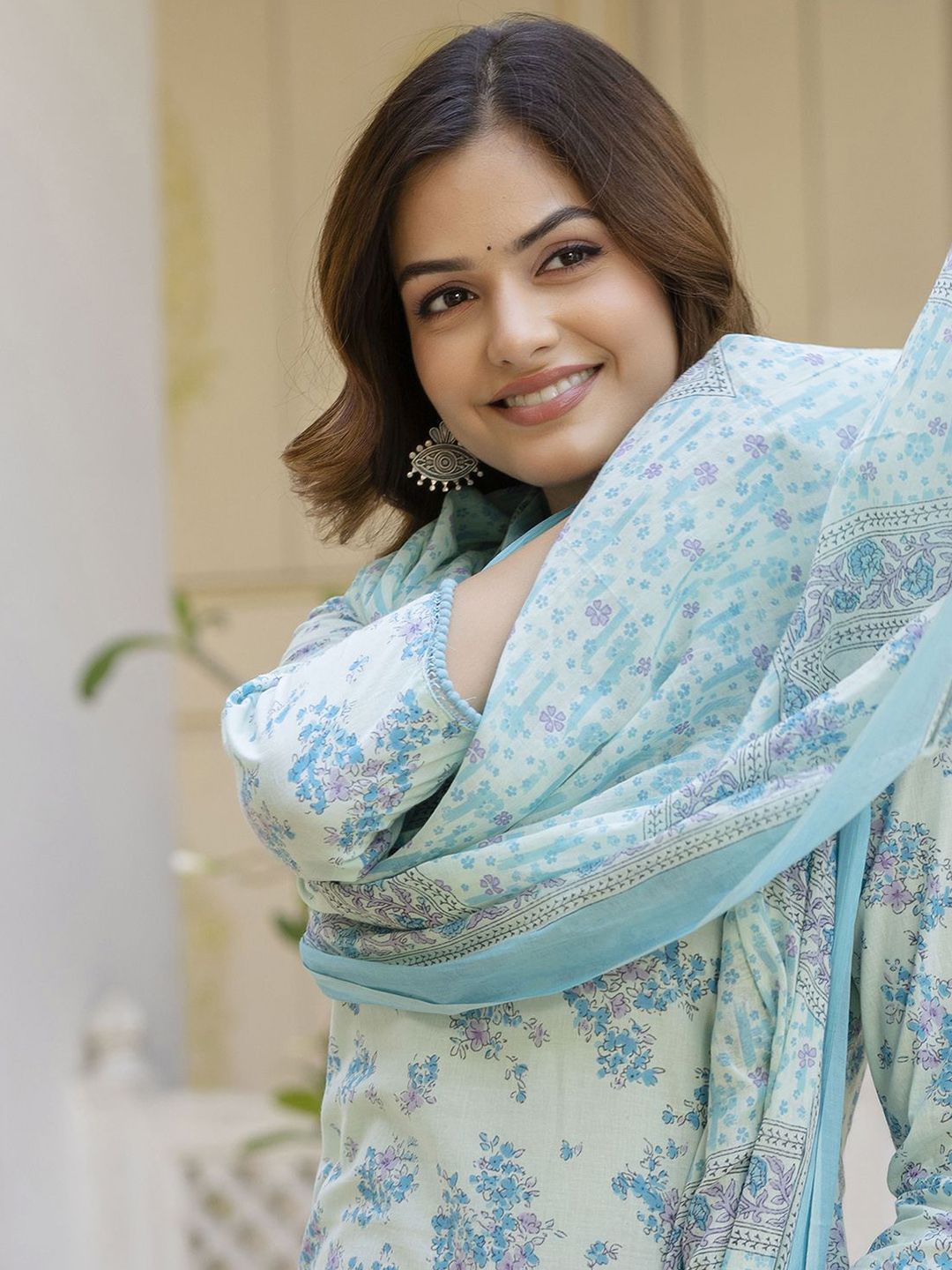 Anouk Rustic Floral Printed Pure Cotton Straight Kurta With Trousers & Dupatta