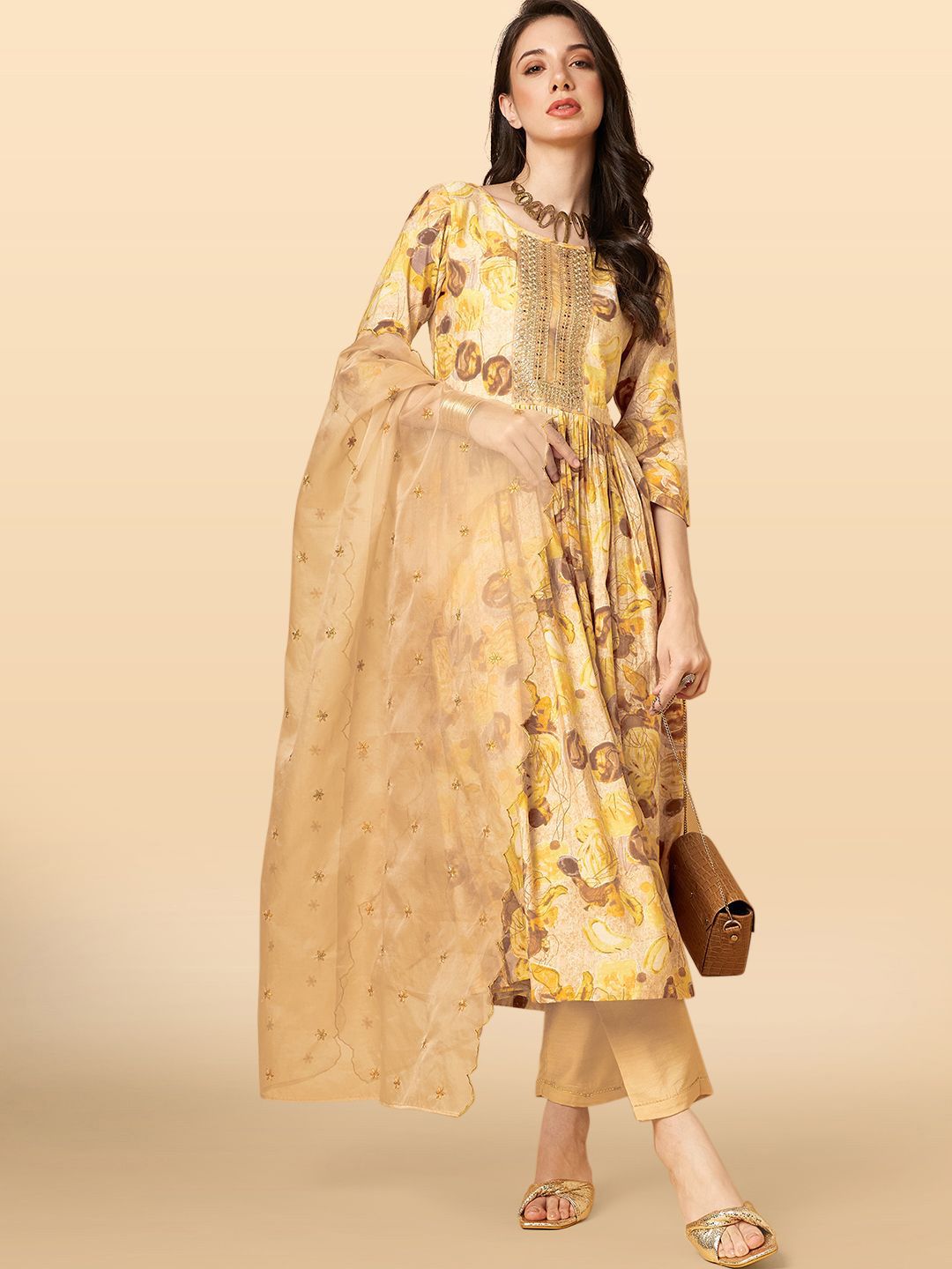 Buy this stylish Anouk Rustic Floral Printed Sequnnied A-Line Kurta With Trousers & Dupatta at Marincart Nepal. This product offers great quality and value. Perfect for those looking for the latest trends in fashion. Get yours now at unbeatable prices.