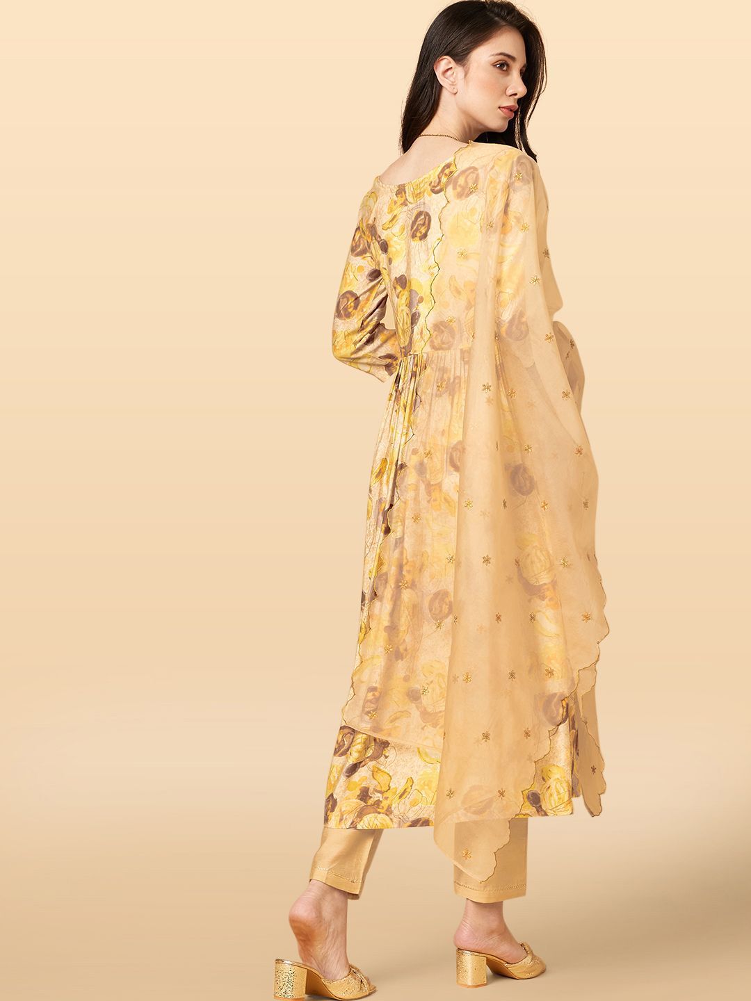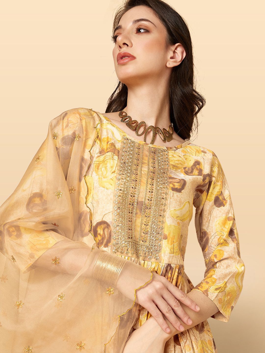 Anouk Rustic Floral Printed Sequnnied A-Line Kurta With Trousers & Dupatta