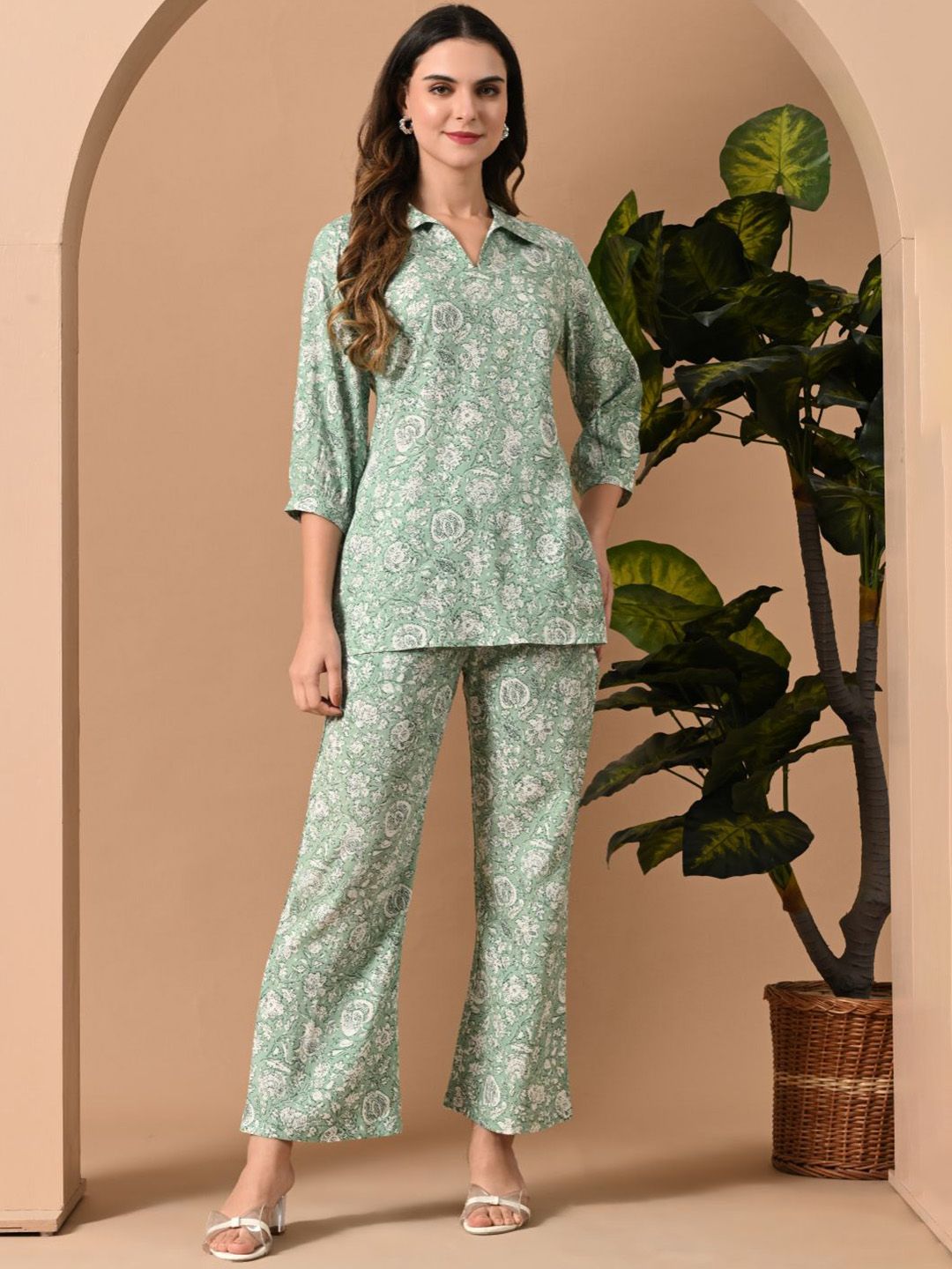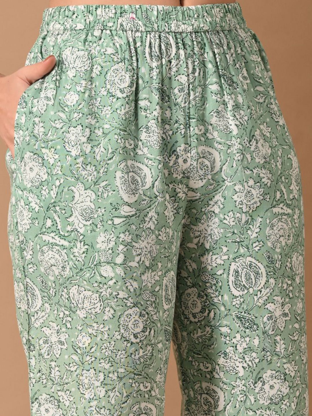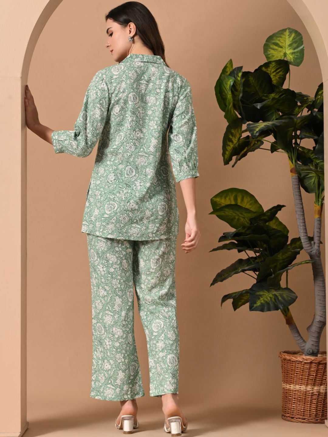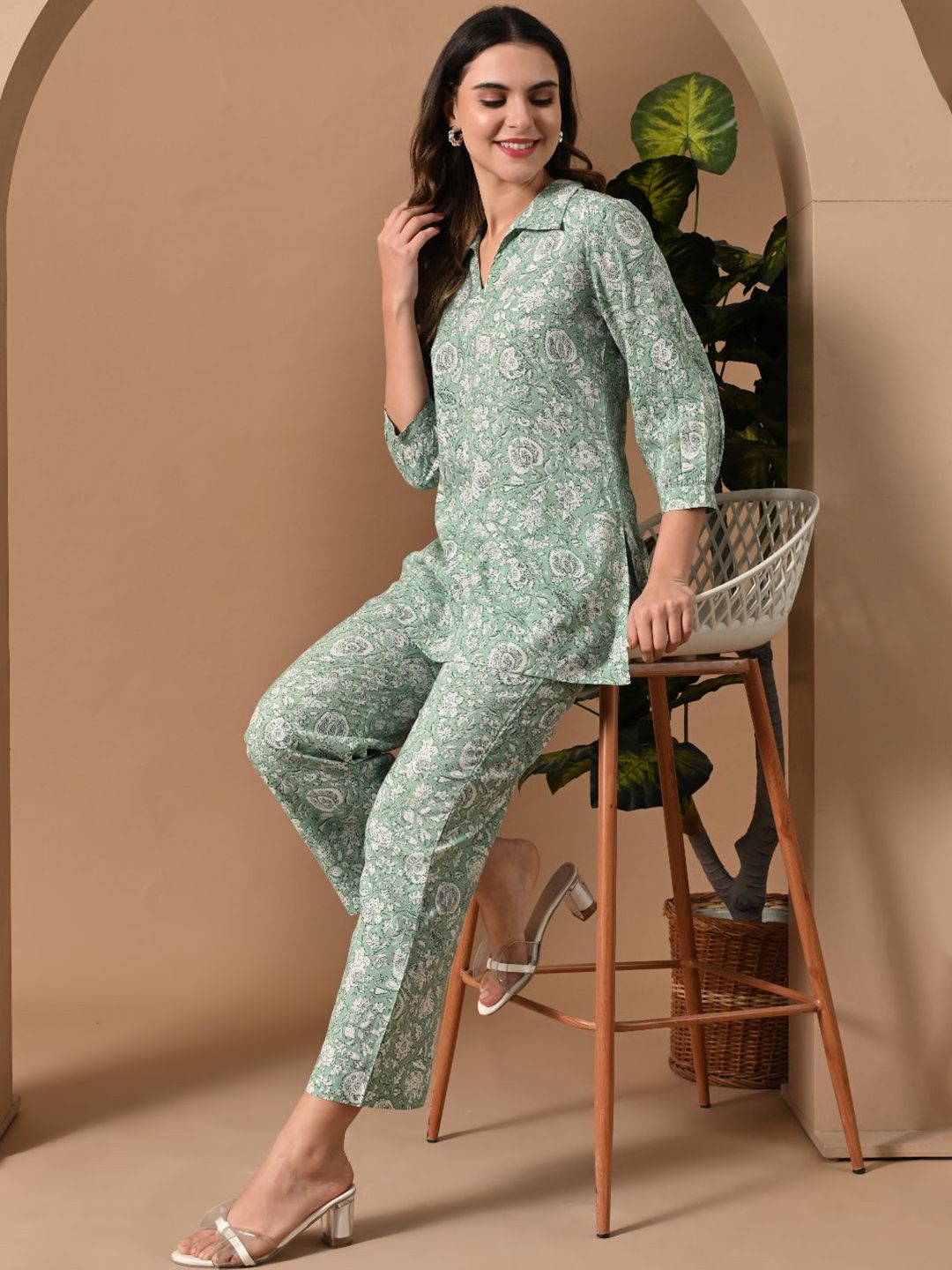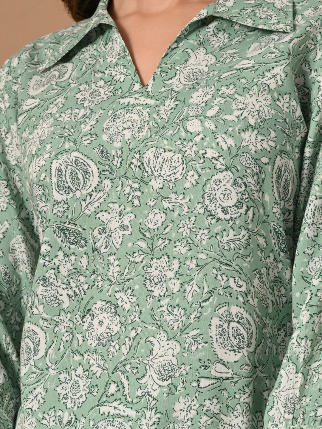 Anouk Rustic Floral Printed Shirt Collar Pure Cotton Kurti with Trousers