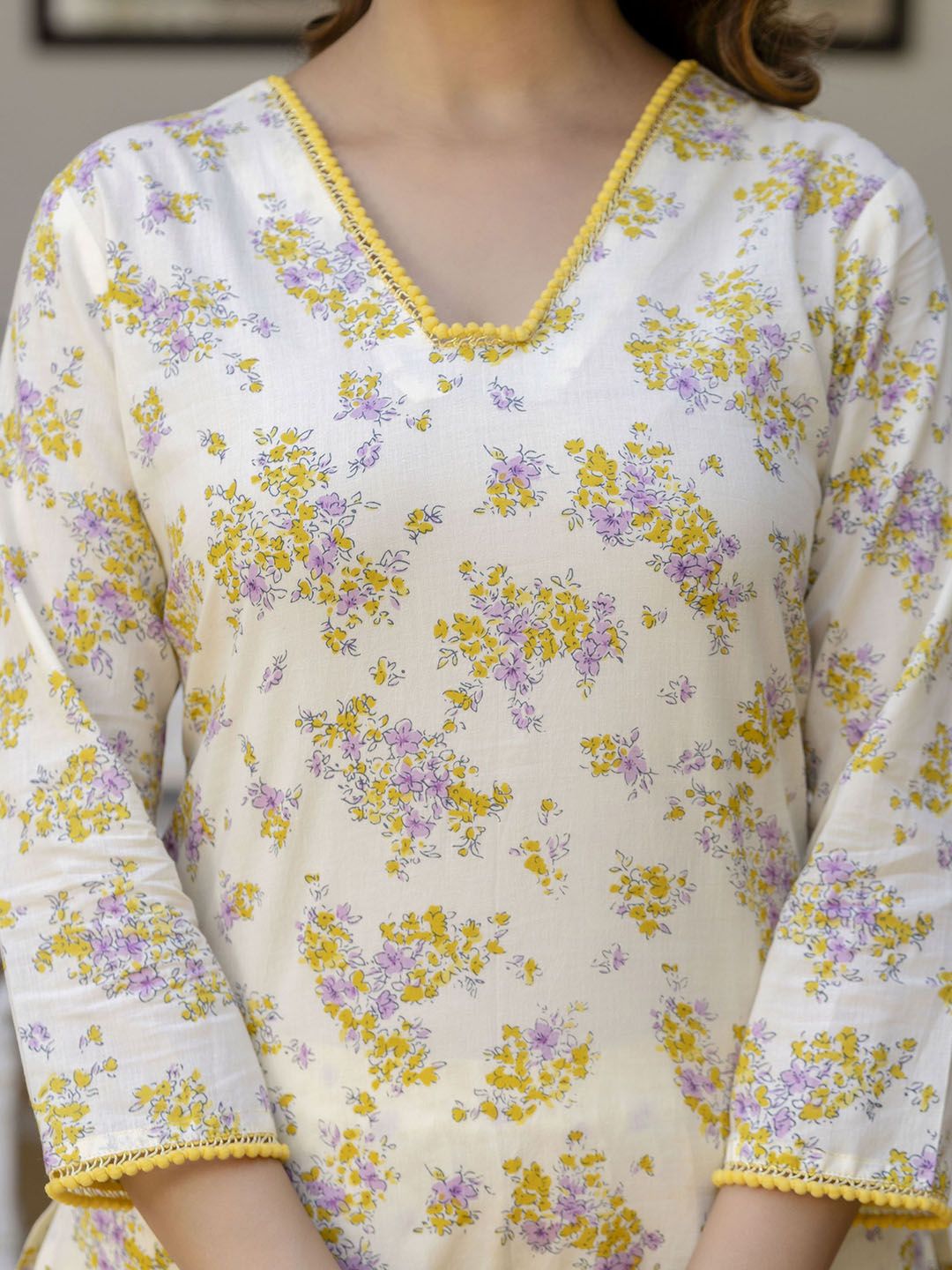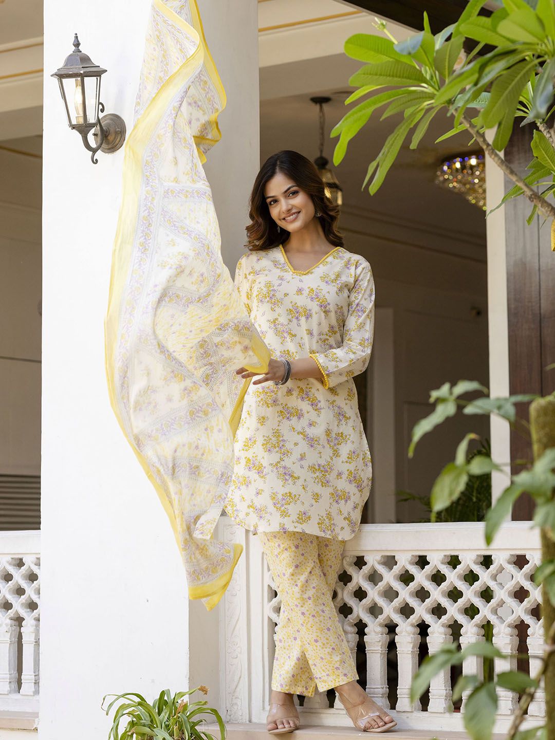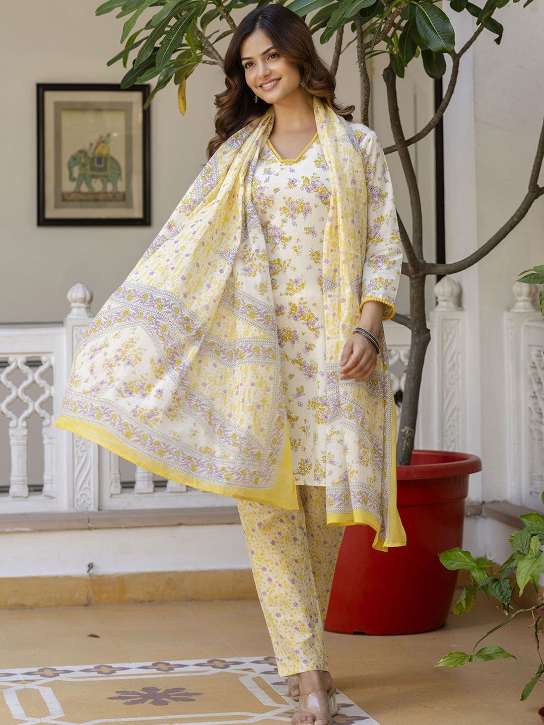 Anouk Rustic Floral Printed Square Neck Pure Cotton Kurta with Pyjama & Dupatta