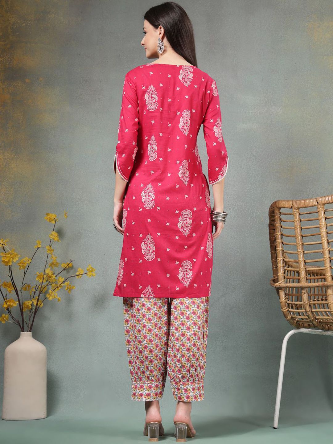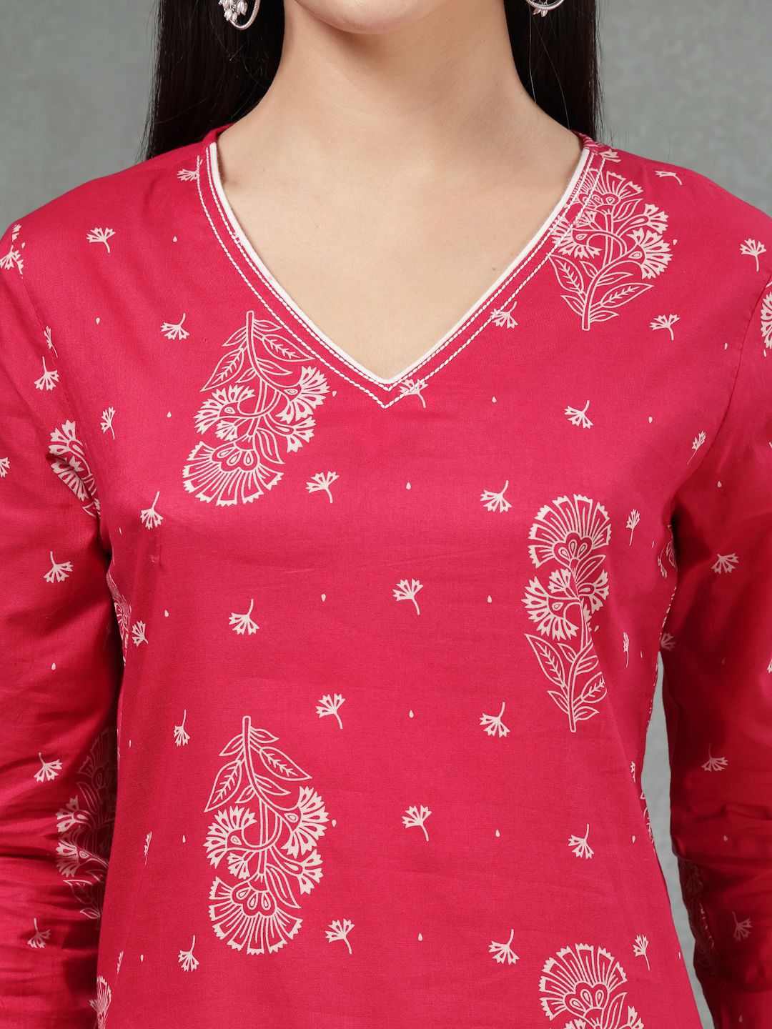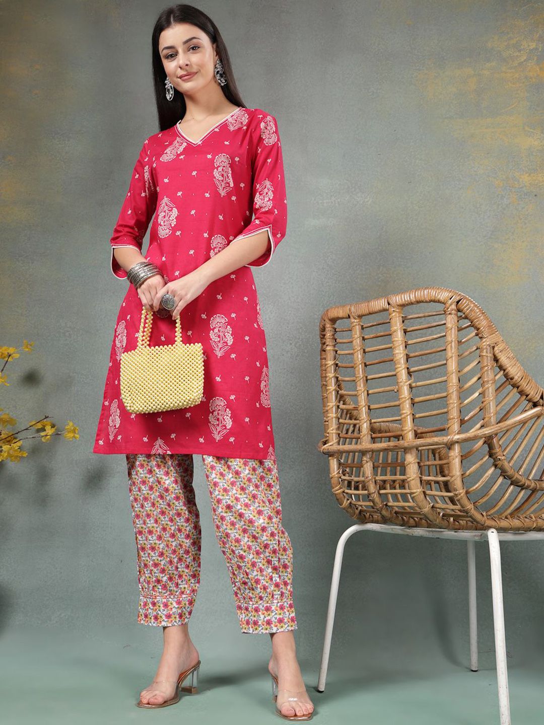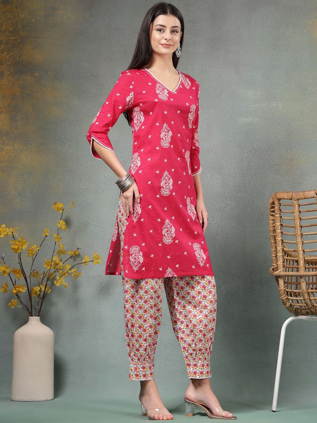 Anouk Rustic Floral Printed V-Neck Pure Cotton Kurta With Trousers