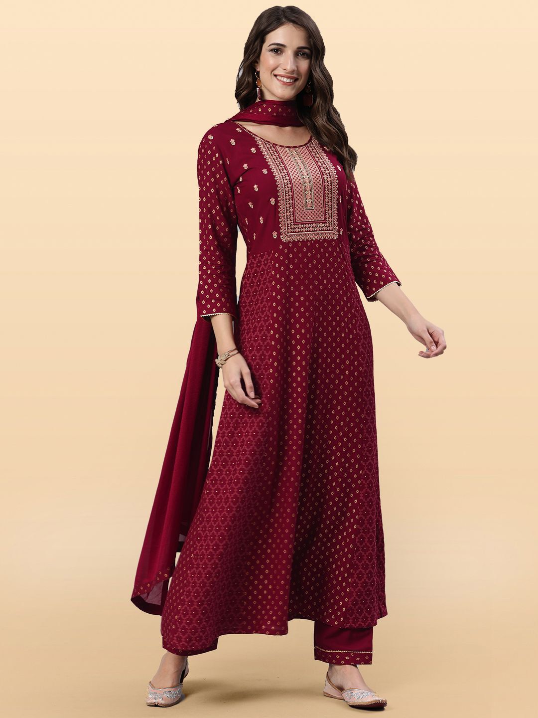 Buy this stylish Anouk Rustic Geometric Printed Thread Work Panelled A-Line Kurta & Trousers With Dupatta at Marincart Nepal. This product offers great quality and value. Perfect for those looking for the latest trends in fashion. Get yours now at unbeatable prices.