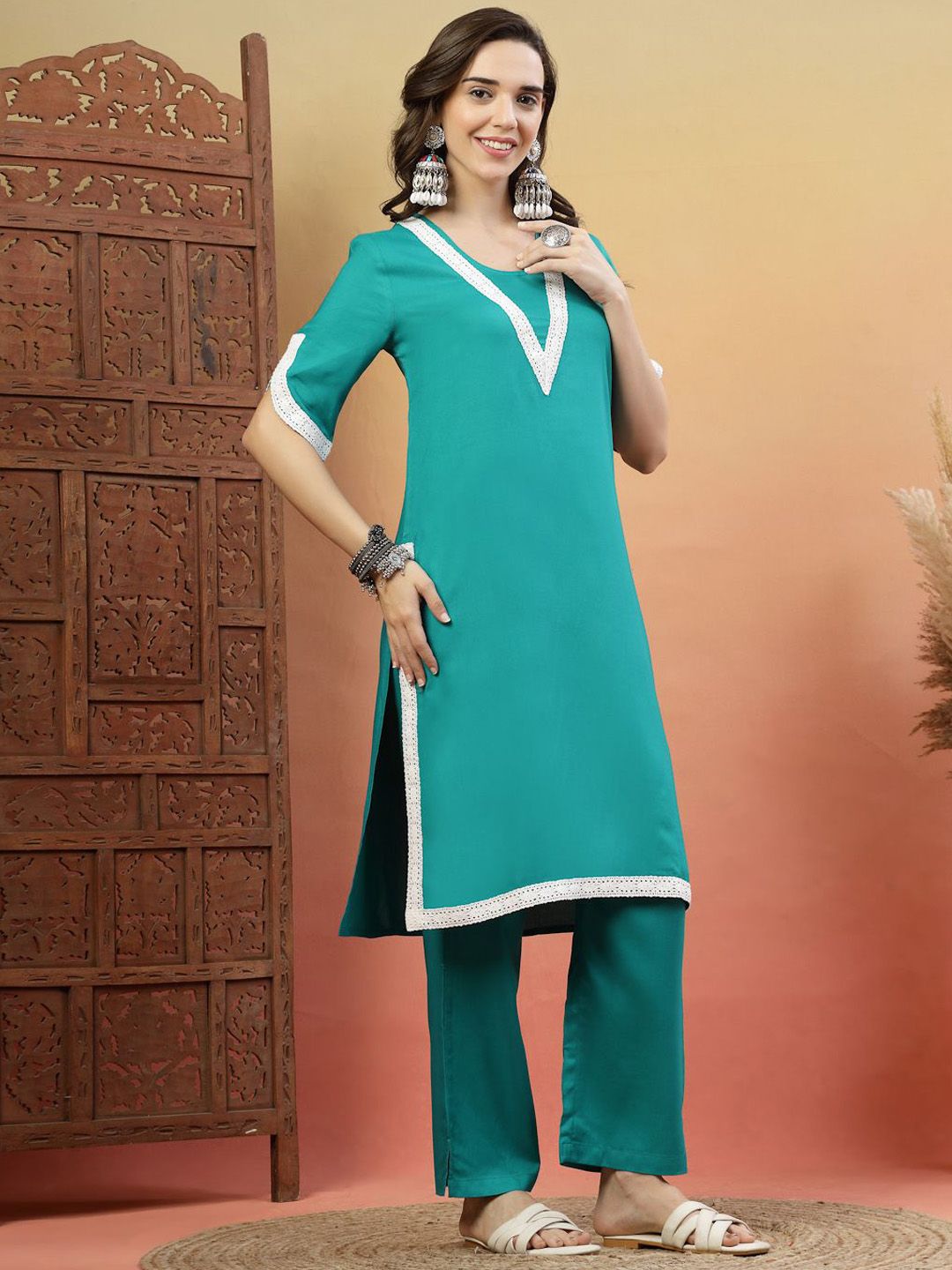 Anouk Rustic Round Neck Straight Kurta With Trousers