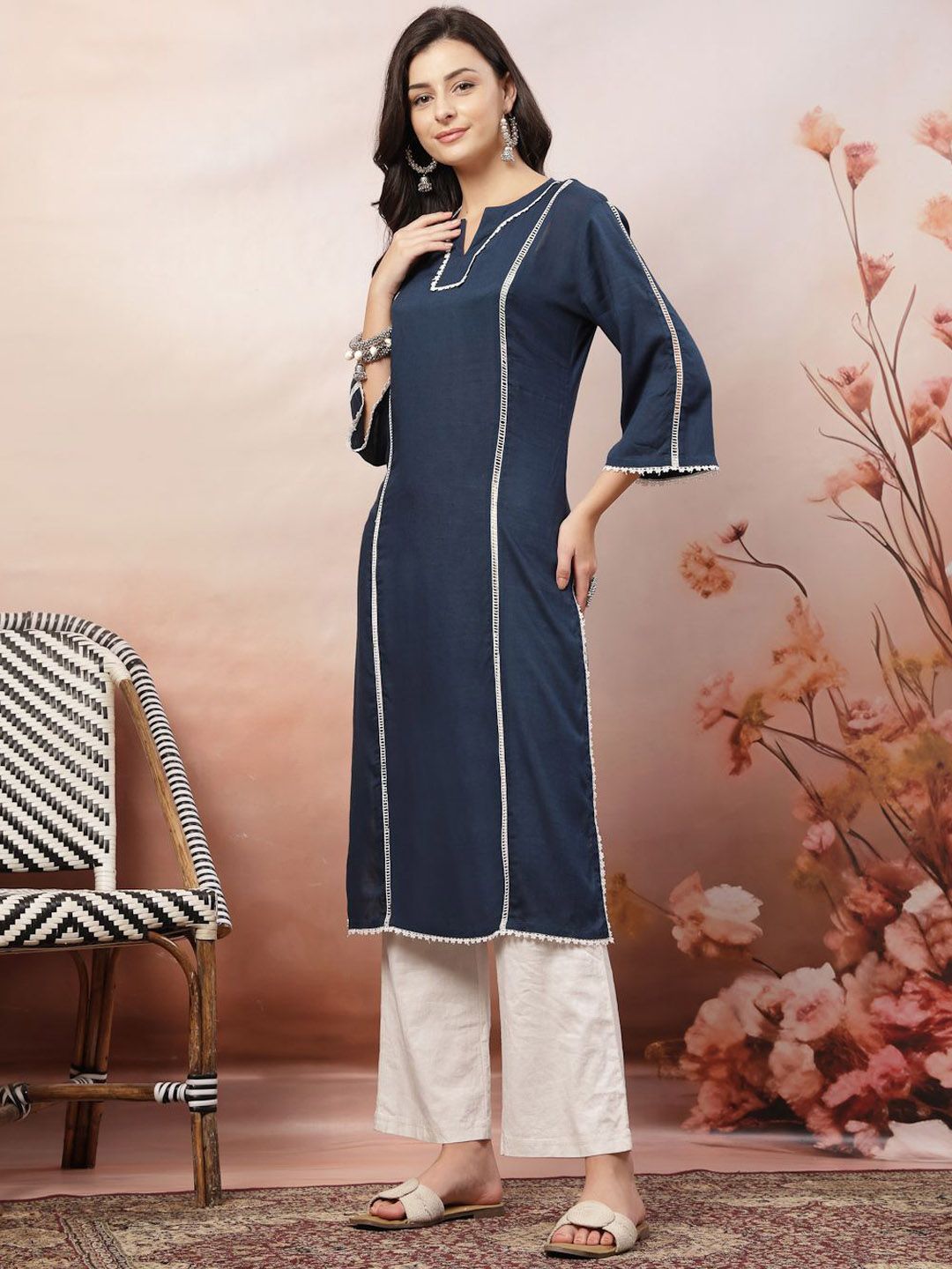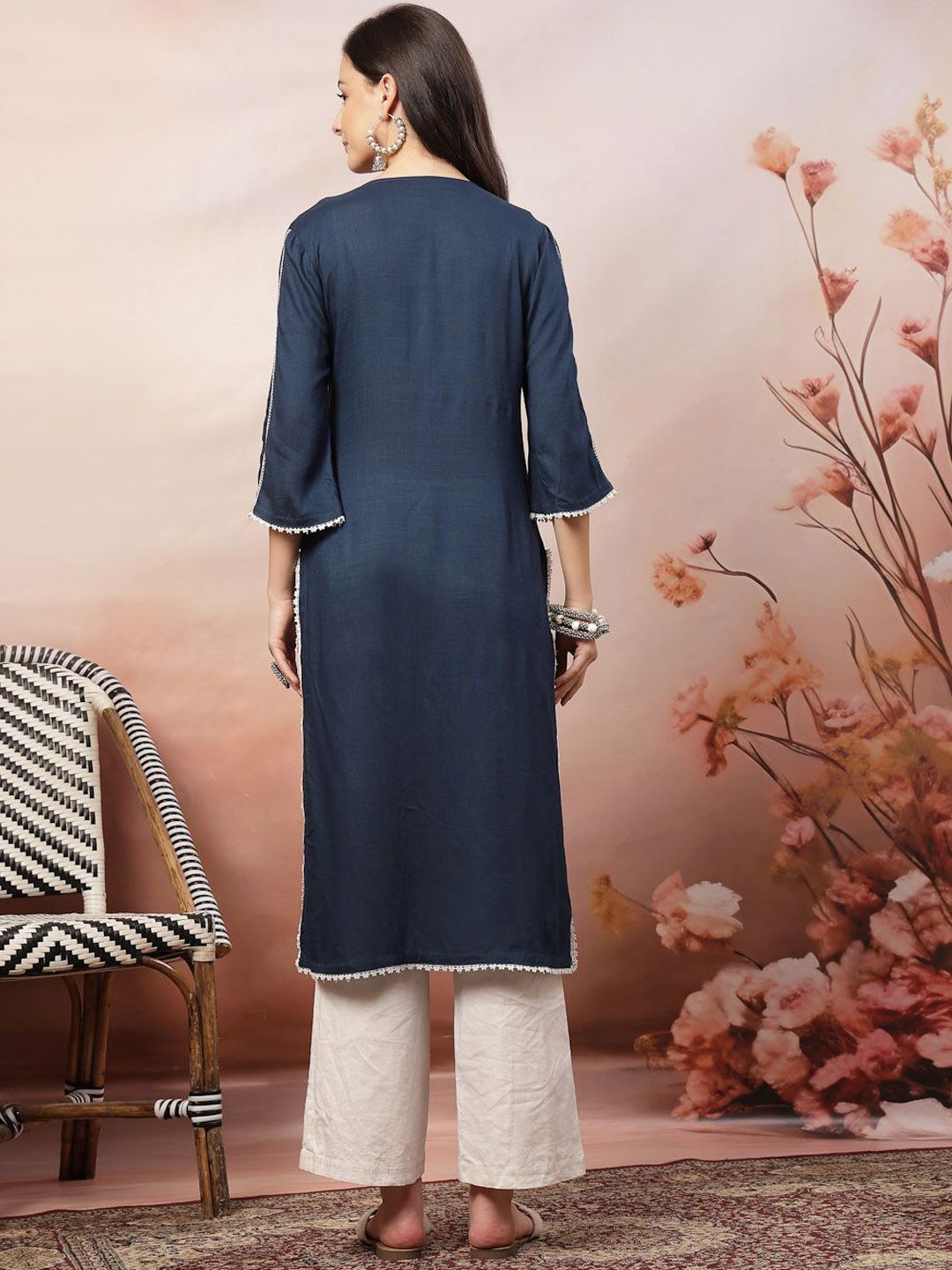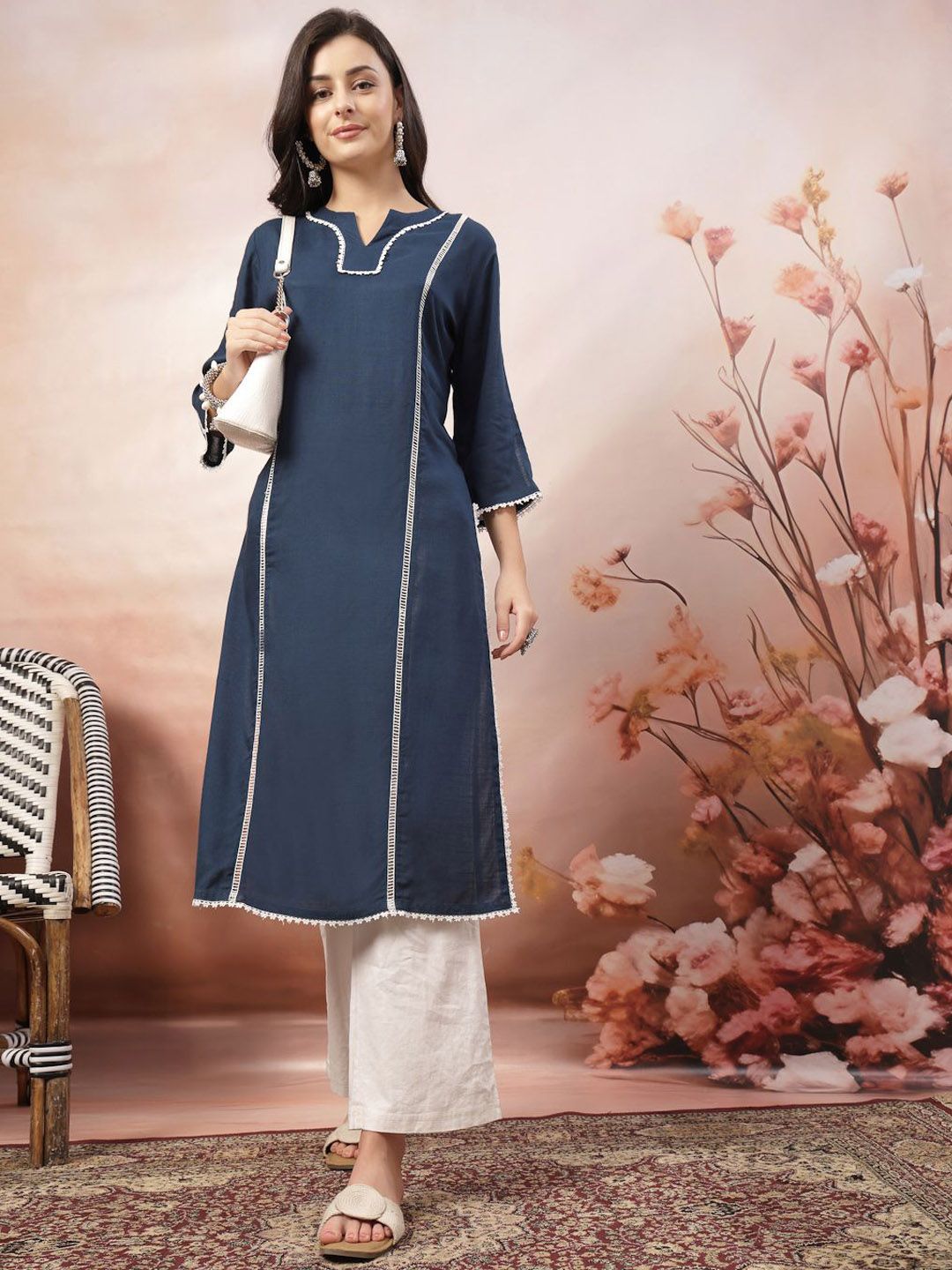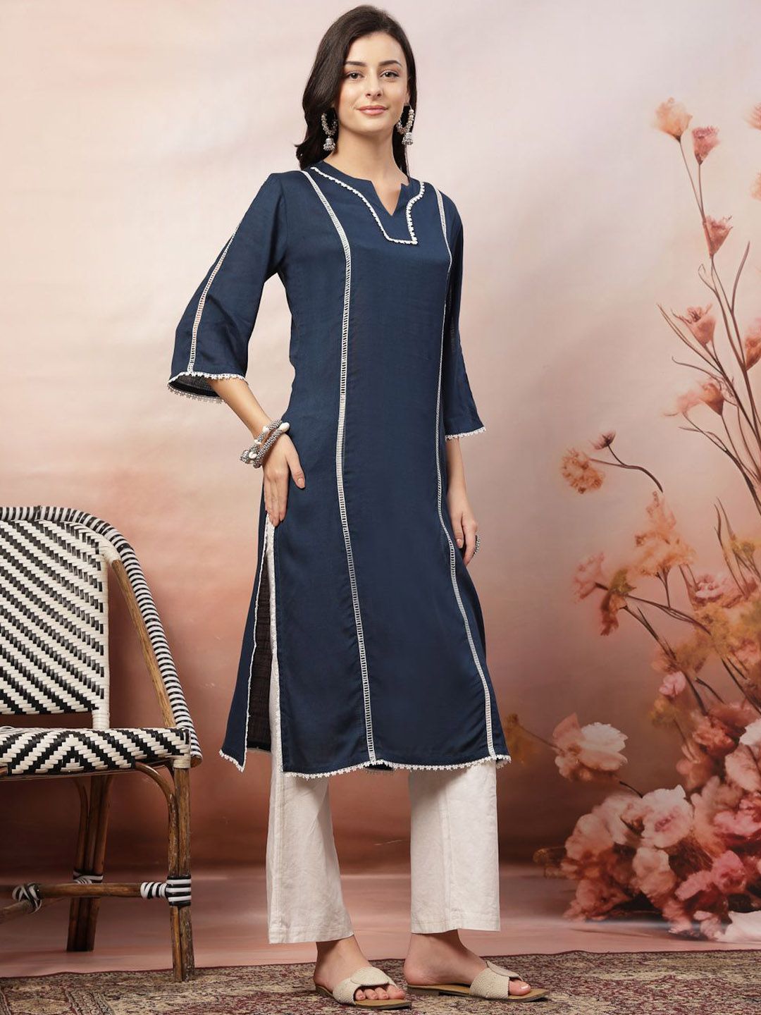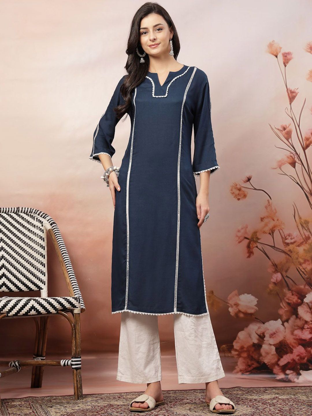 Anouk Rustic Self Design Notch Neck Straight Kurta With Trousers