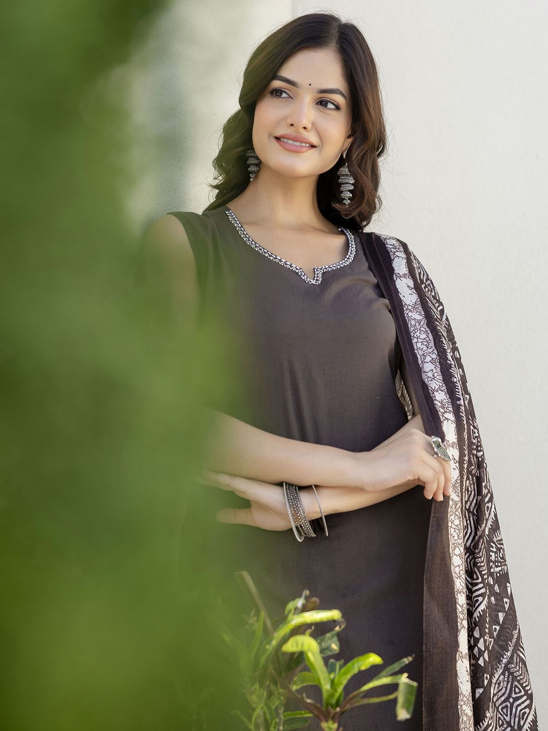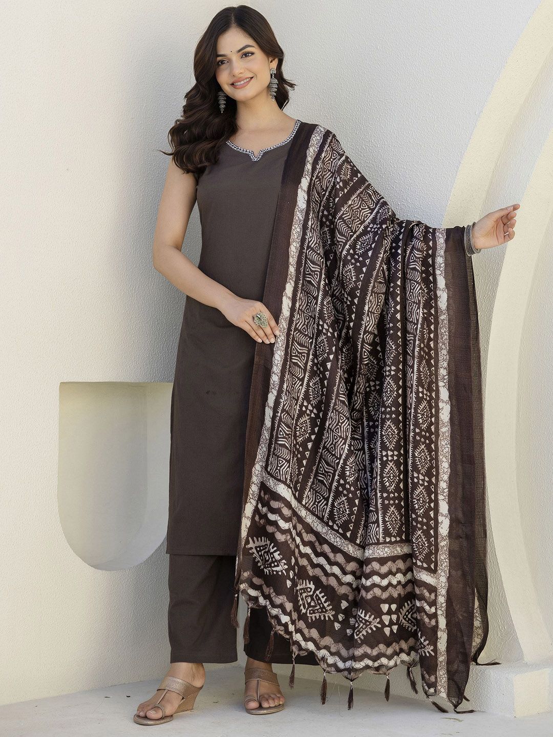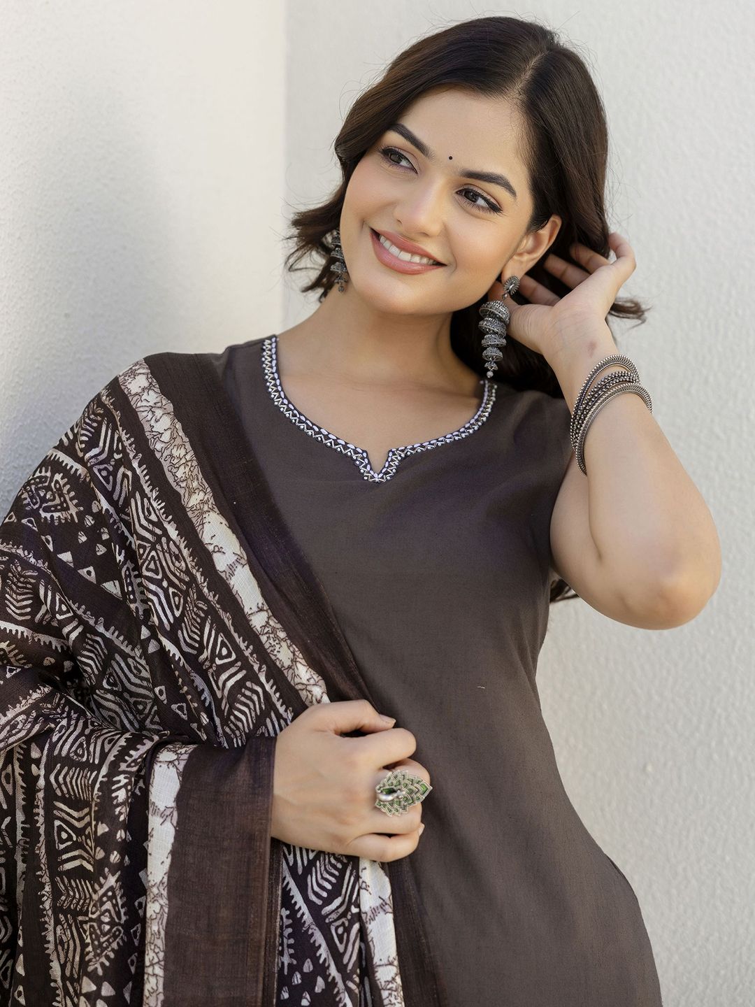 Anouk Rustic Women Dyed Regular Pure Cotton Kurta, Pyjamas With Dupatta