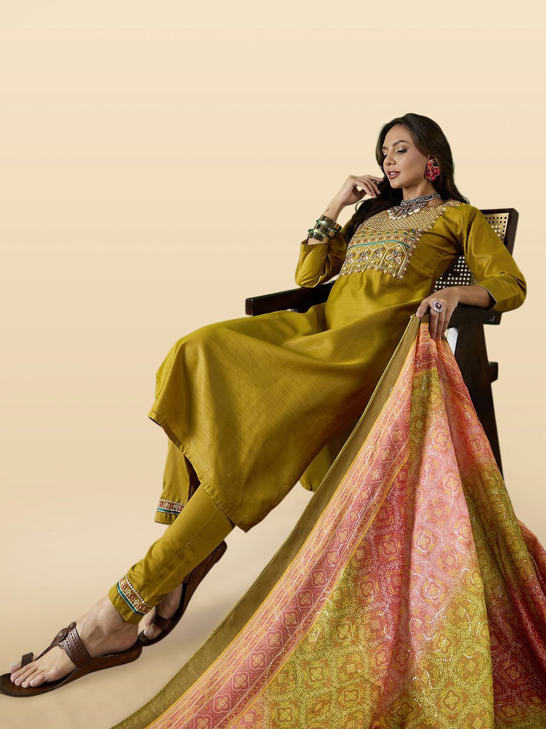 Anouk Rustic Women Embroidered Regular Sequinned Kurta with Trousers & Dupatta