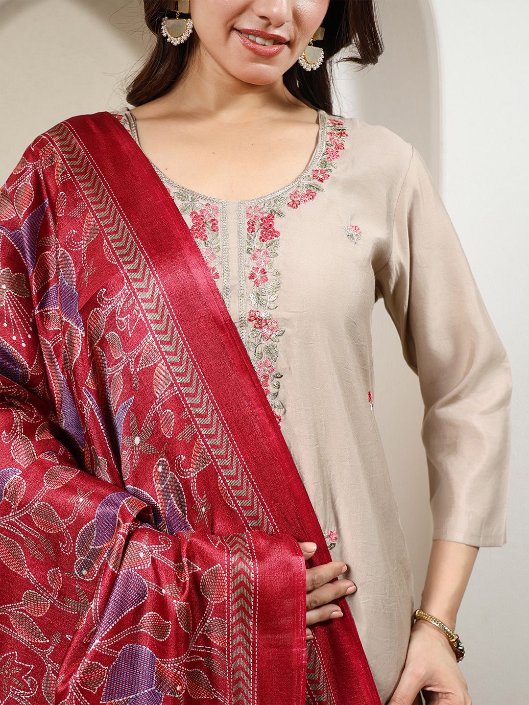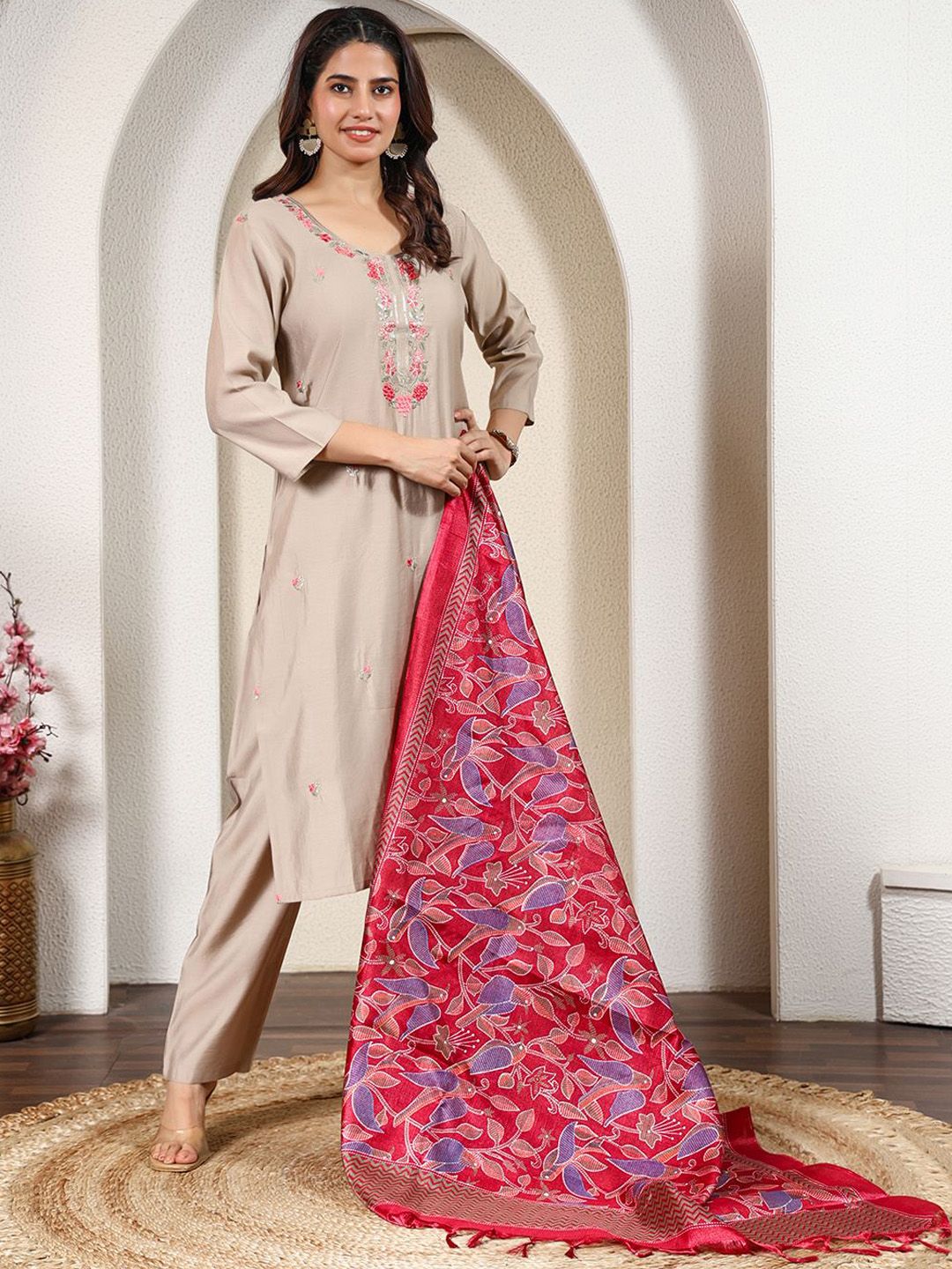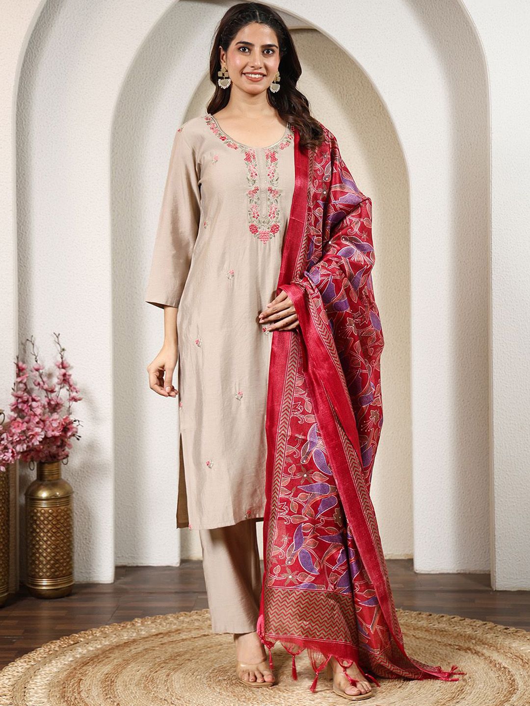 Anouk Rustic Women Embroidered Thread Work Kurta with Trousers & Dupatta