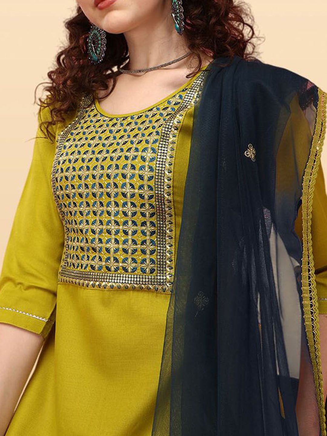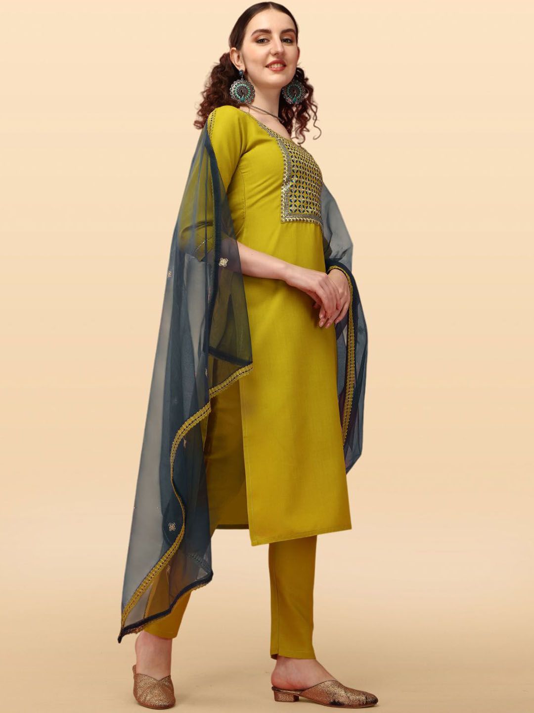 Anouk Rustic Women Ethnic Motifs Embroidered Kurta with Trousers & With Dupatta