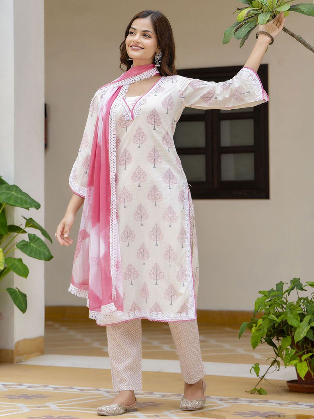 Anouk Rustic Women Ethnic Motifs Printed Cotton Kurta with Trousers & Dupatta