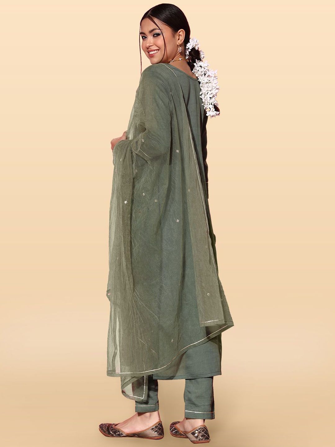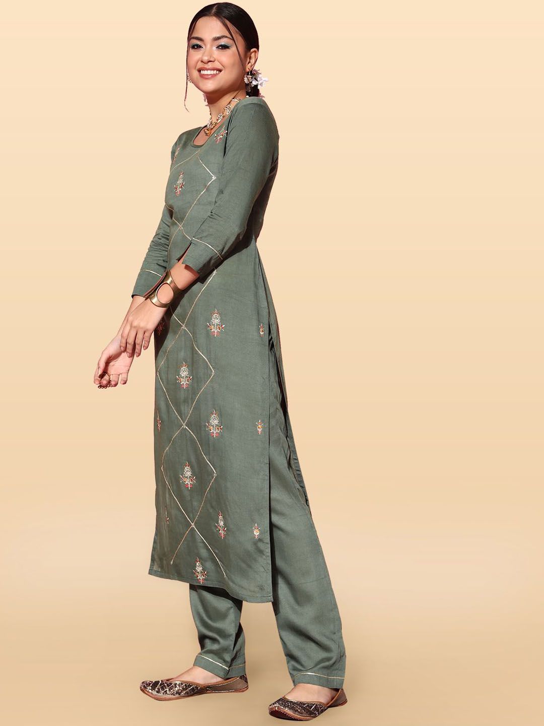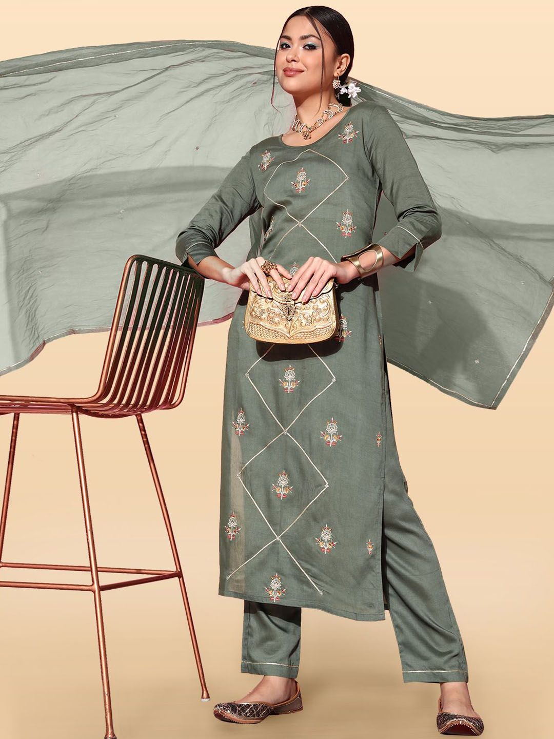 Anouk Rustic Women Floral Embroidered Kurta with Trousers & Dupatta