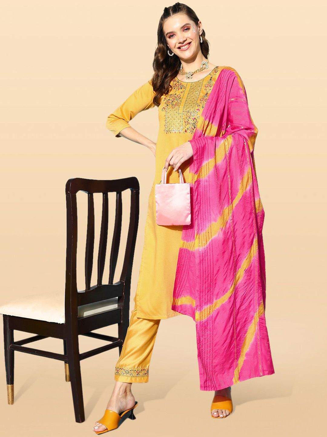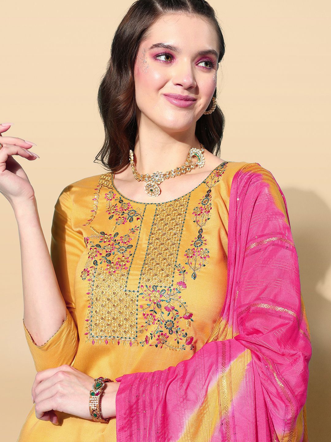 Anouk Rustic Women Floral Embroidered Sequinned Kurta Set With Dupatta