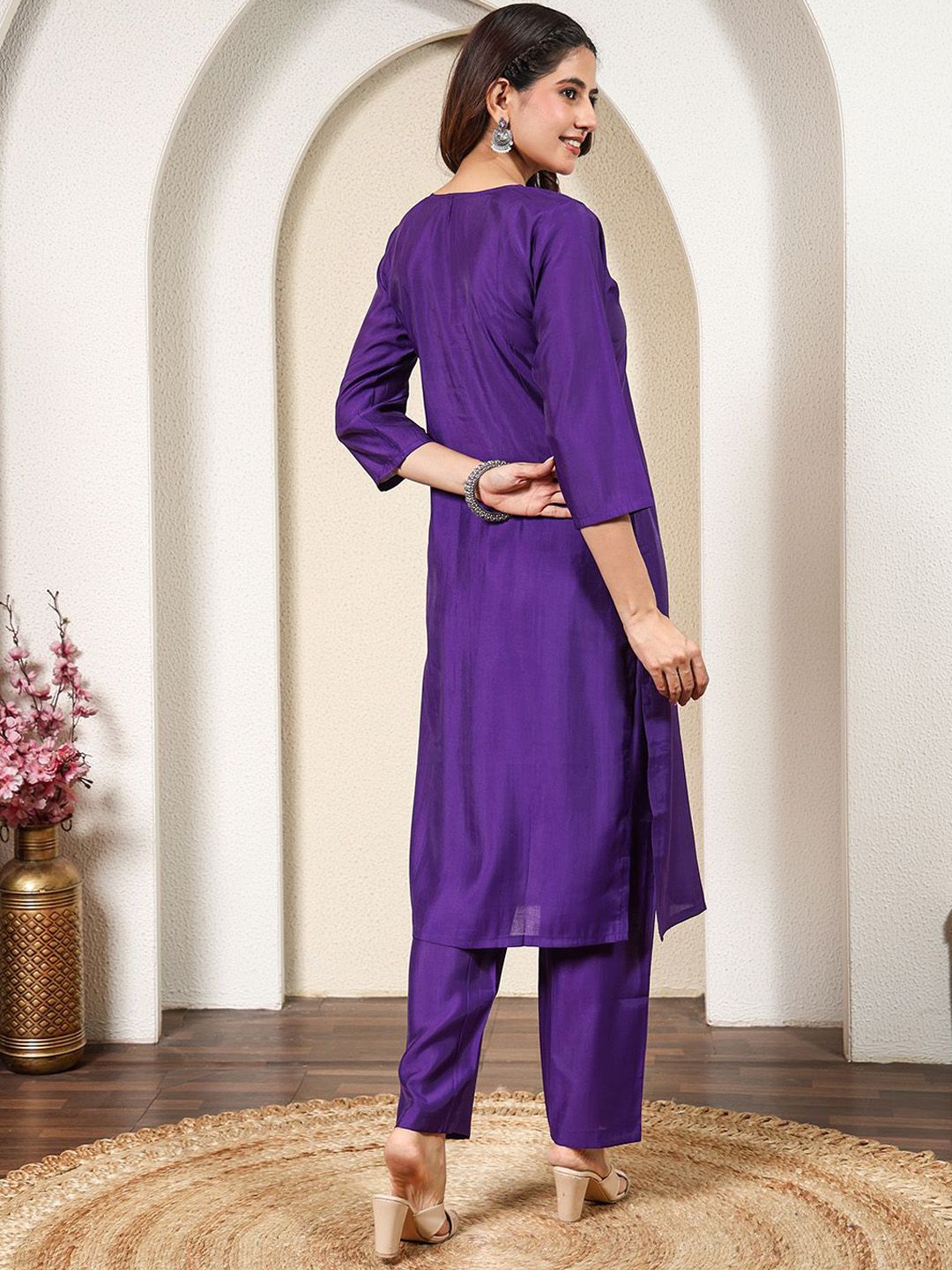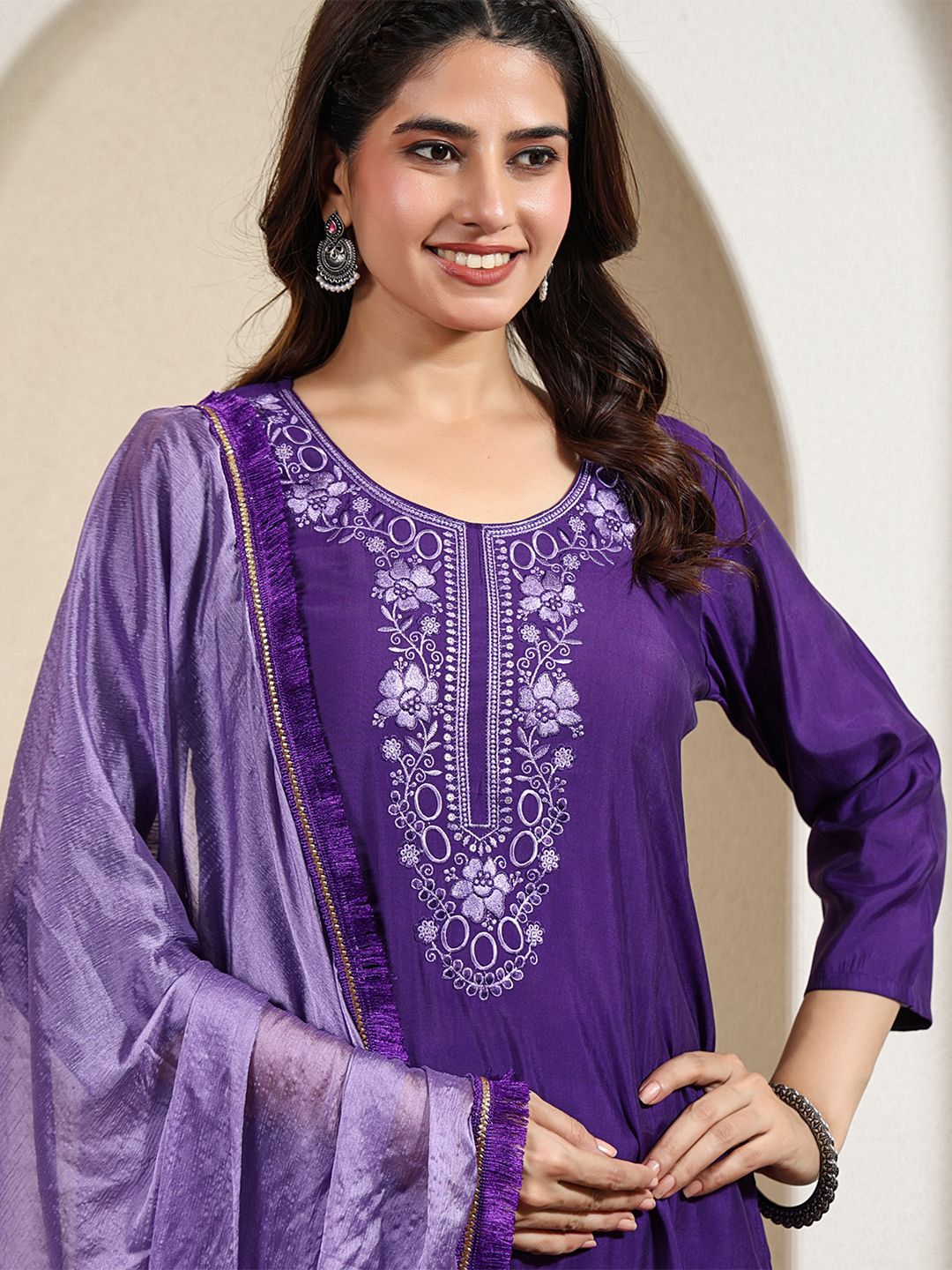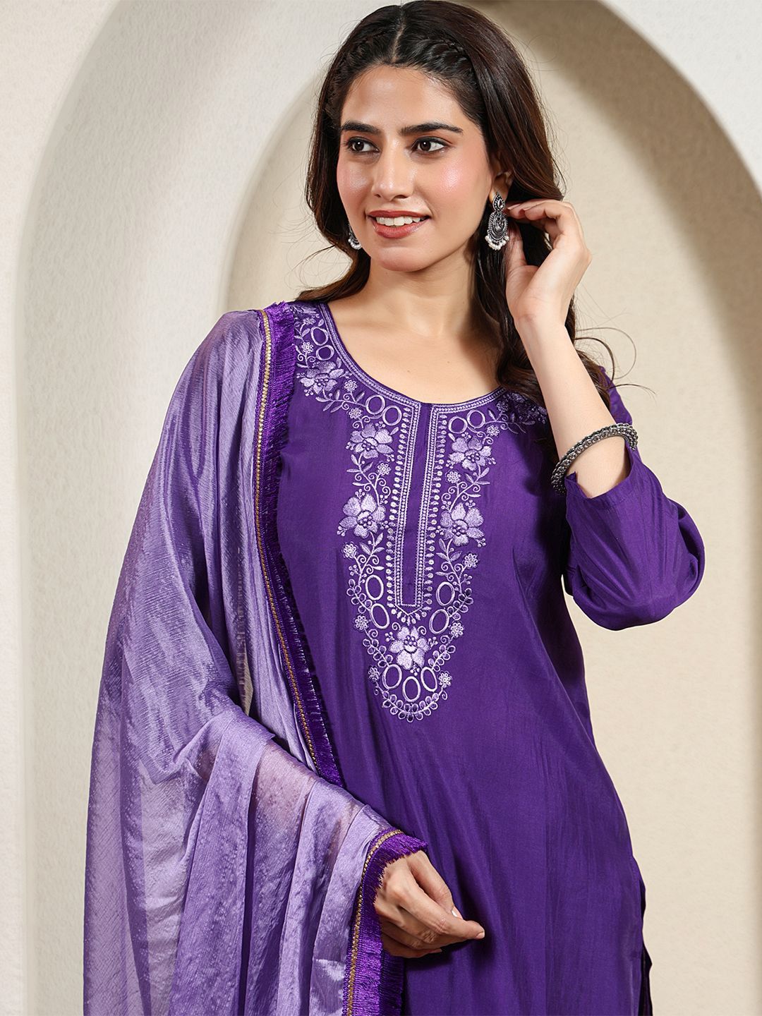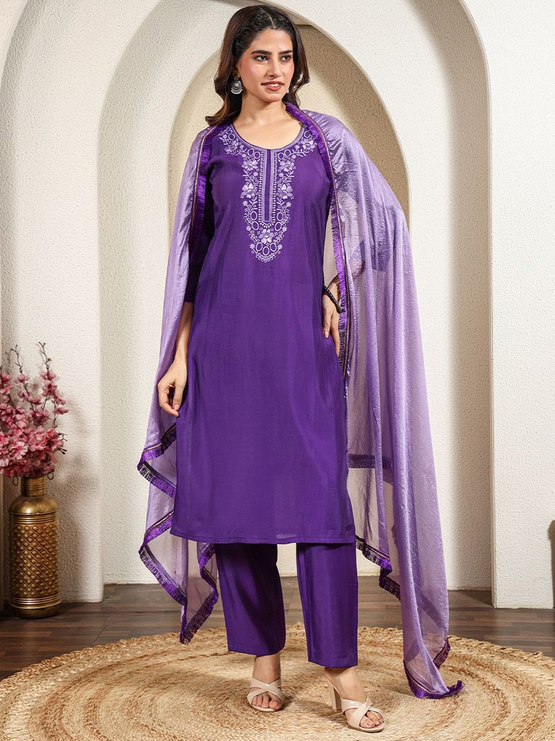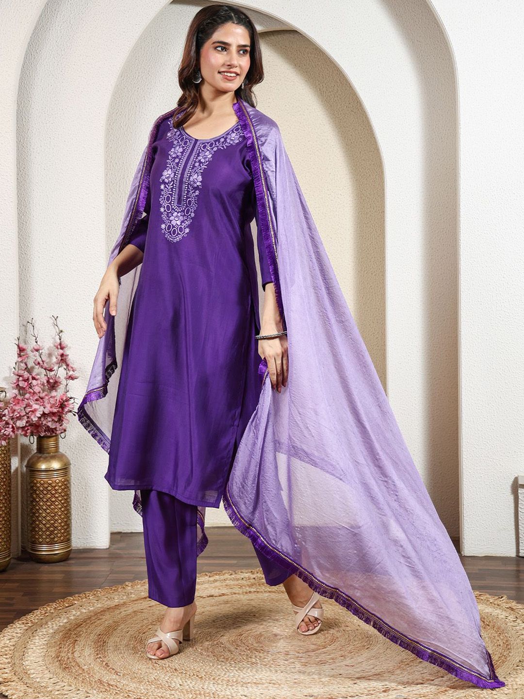 Anouk Rustic Women Floral Embroidered Thread Work Kurta with Trousers & Dupatta