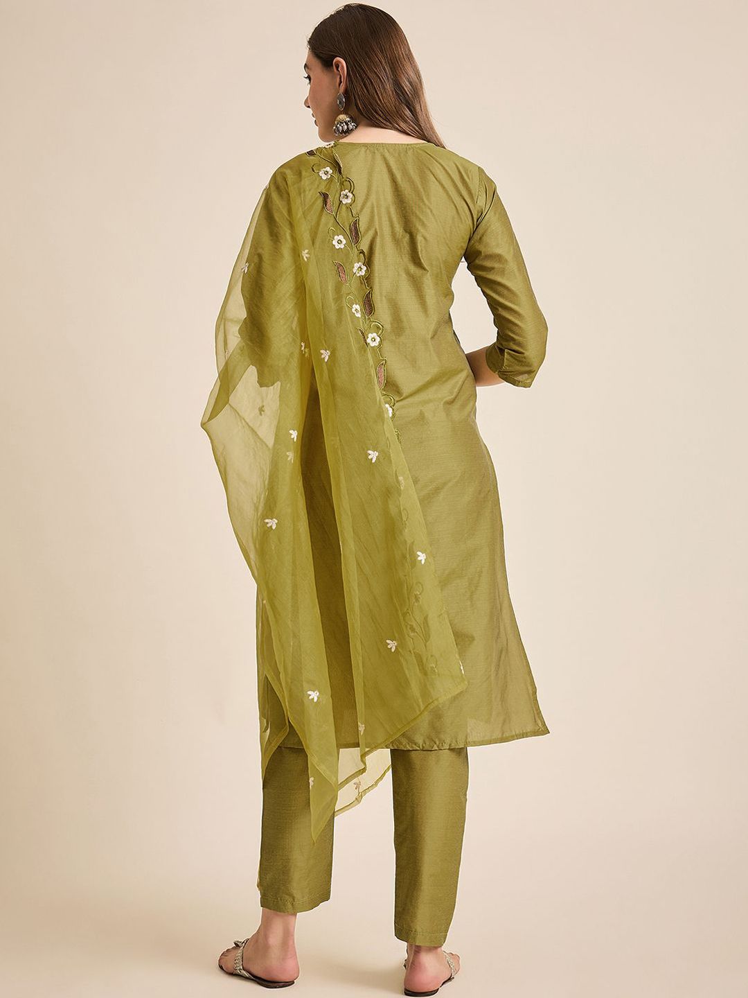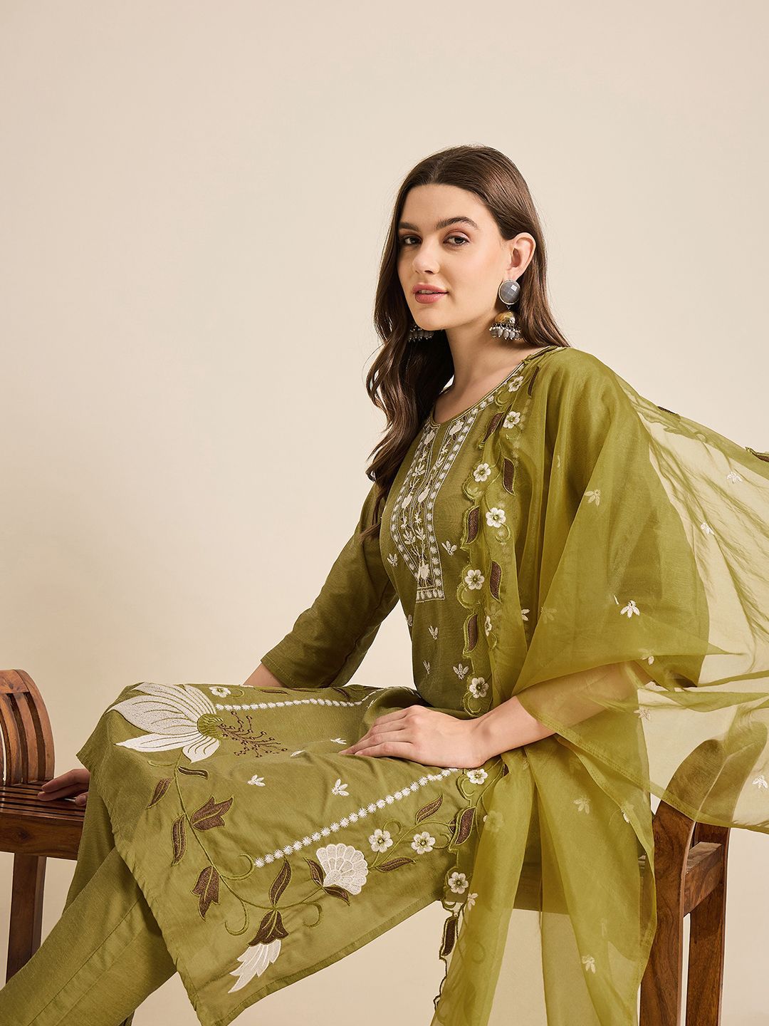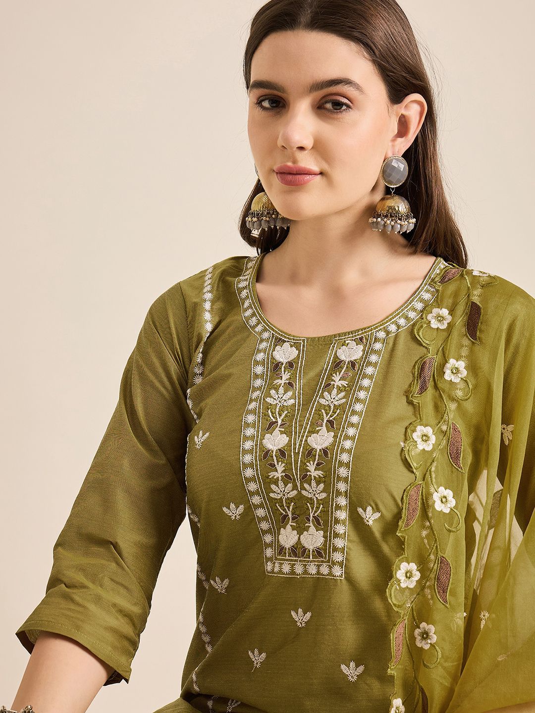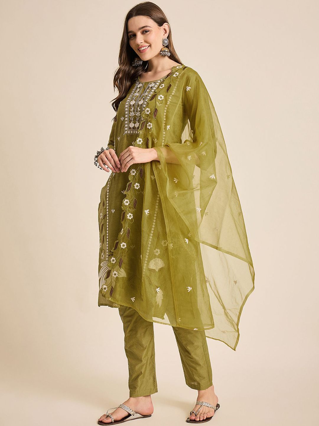 Anouk Rustic Women Floral Embroidered Thread Work Kurta with Trousers & Dupatta