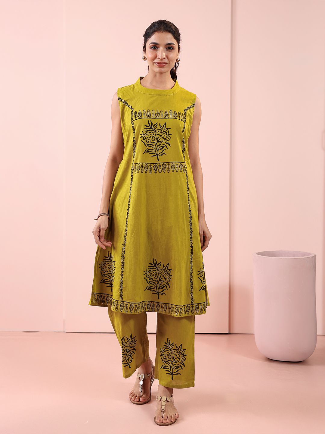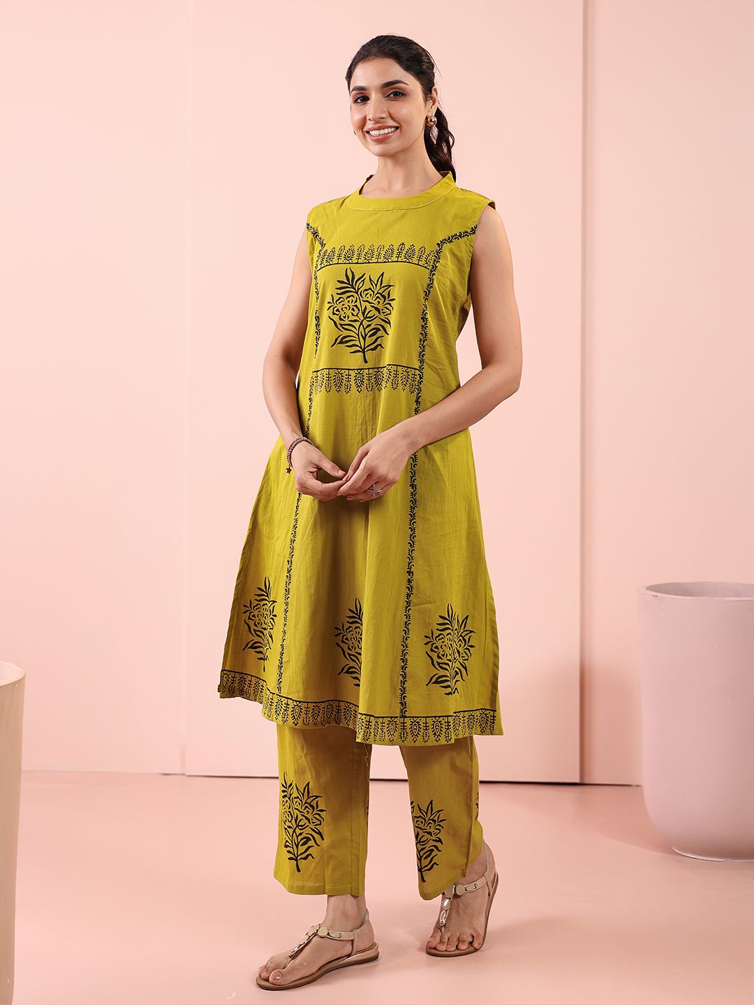 Anouk Rustic Women Floral Printed Cotton A-Line Kurta with Trousers