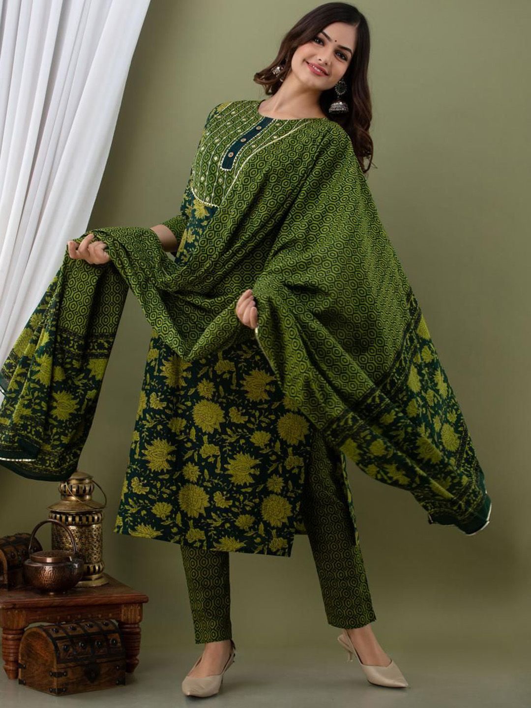 Buy this stylish Anouk Rustic Women Floral Printed Gotta Patti Pure Cotton Kurta with Trousers & Dupatta at Marincart Nepal. This product offers great quality and value. Perfect for those looking for the latest trends in fashion. Get yours now at unbeatable prices.