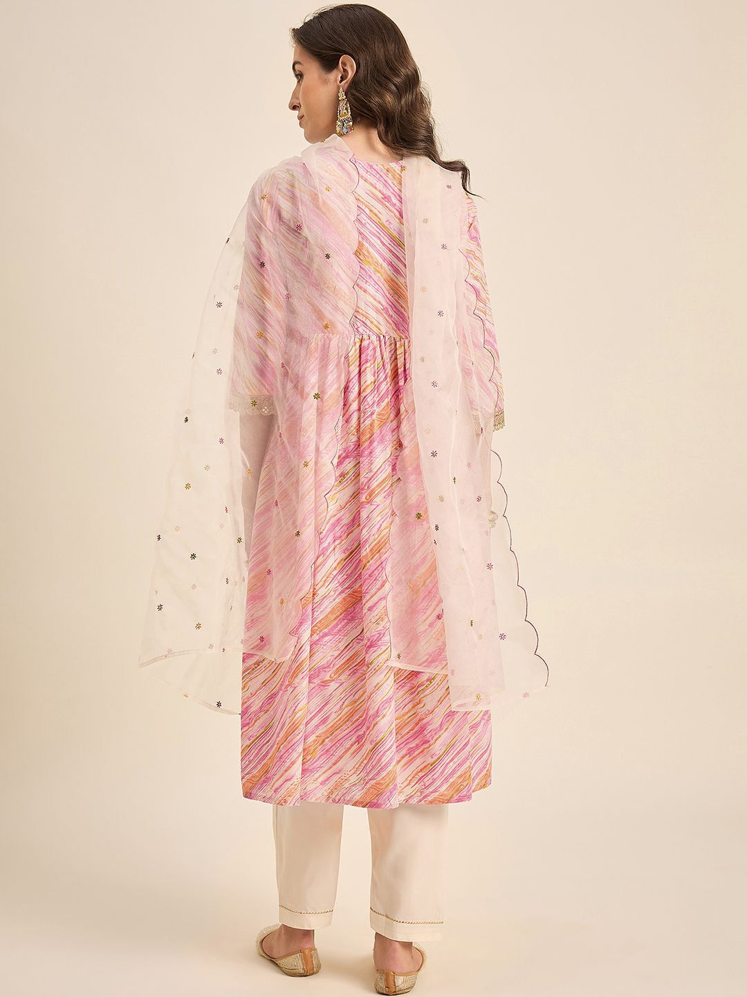 Anouk Rustic Women Leheriya Embroidered Pleated Sequinned Kurta with Trousers & Dupatta