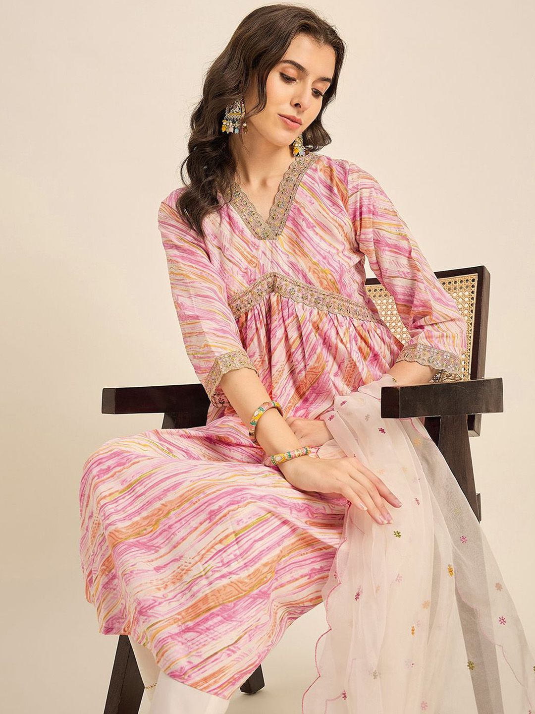 Buy this stylish Anouk Rustic Women Leheriya Embroidered Pleated Sequinned Kurta with Trousers & Dupatta at Marincart Nepal. This product offers great quality and value. Perfect for those looking for the latest trends in fashion. Get yours now at unbeatable prices.
