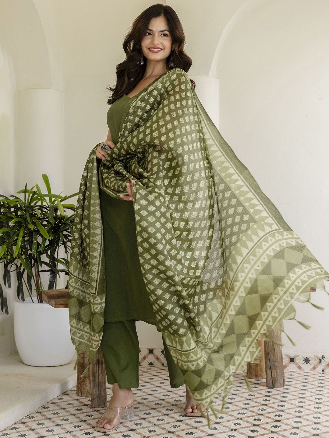 Anouk Rustic Women Solid Regular Pure Cotton Kurta with Trousers & With Dupatta
