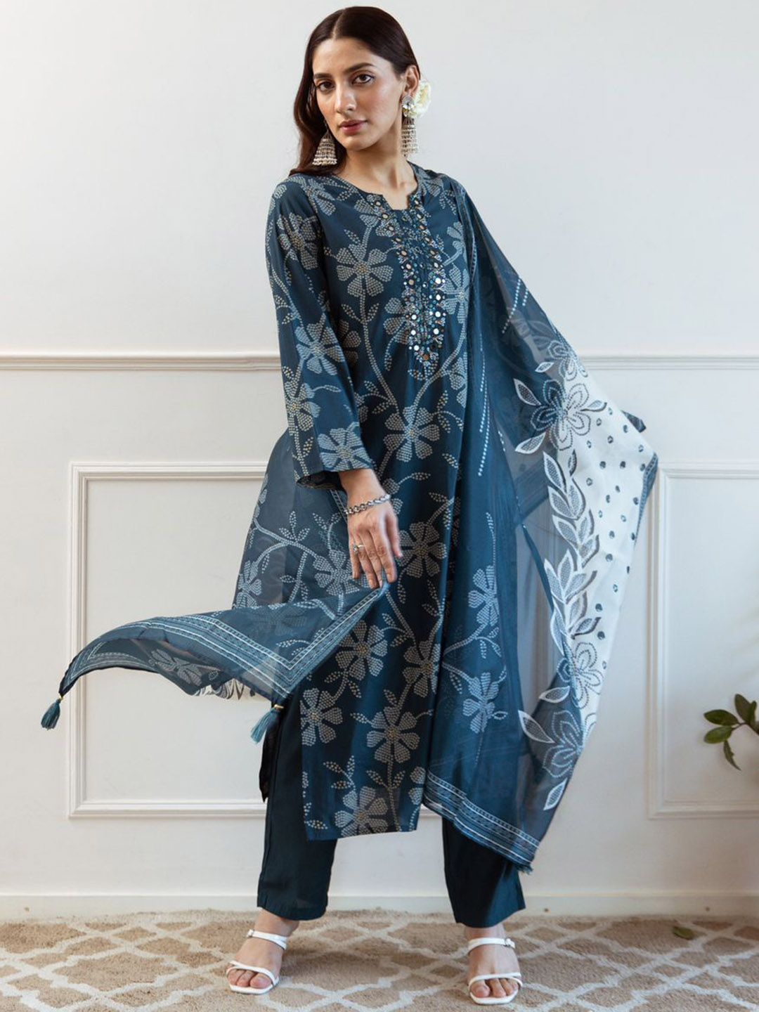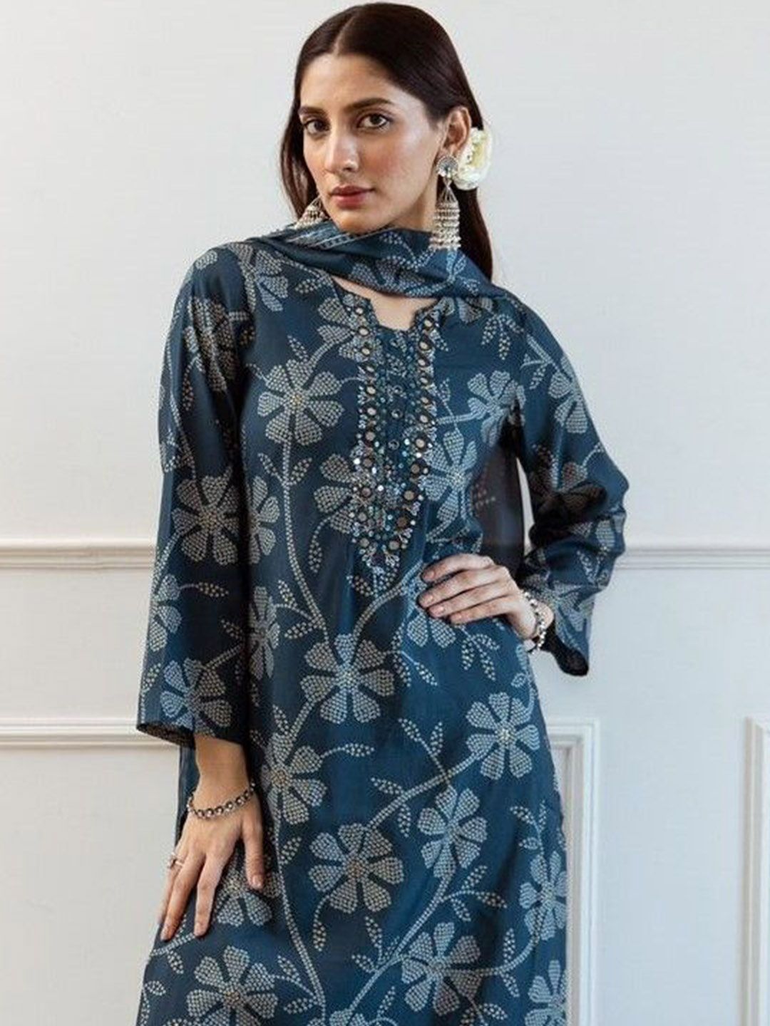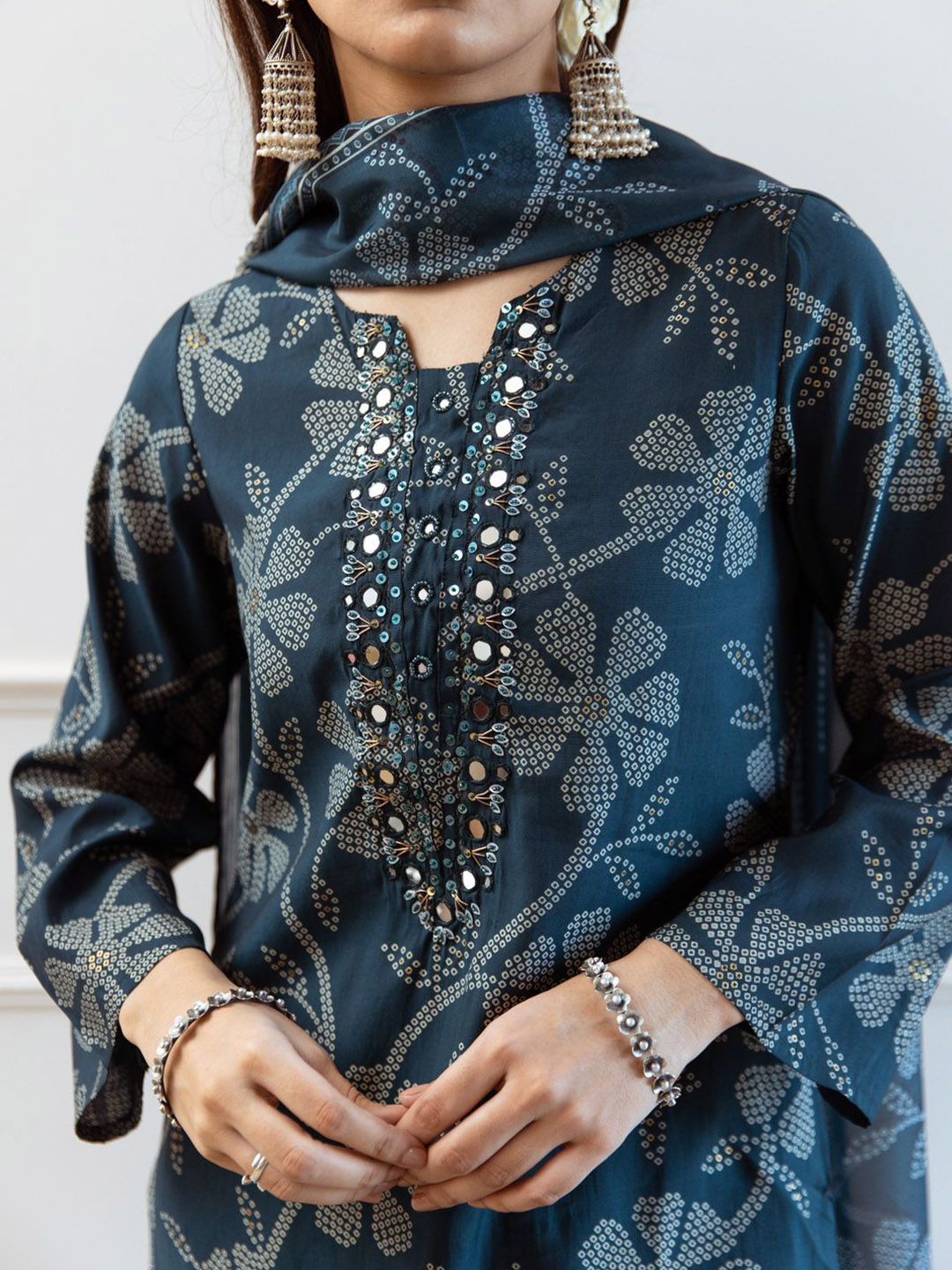Buy this stylish Anouk Women Bandhani Printed Square Neck Mirror Work Kurta with Trousers & Dupatta at Marincart Nepal. This product offers great quality and value. Perfect for those looking for the latest trends in fashion. Get yours now at unbeatable prices.