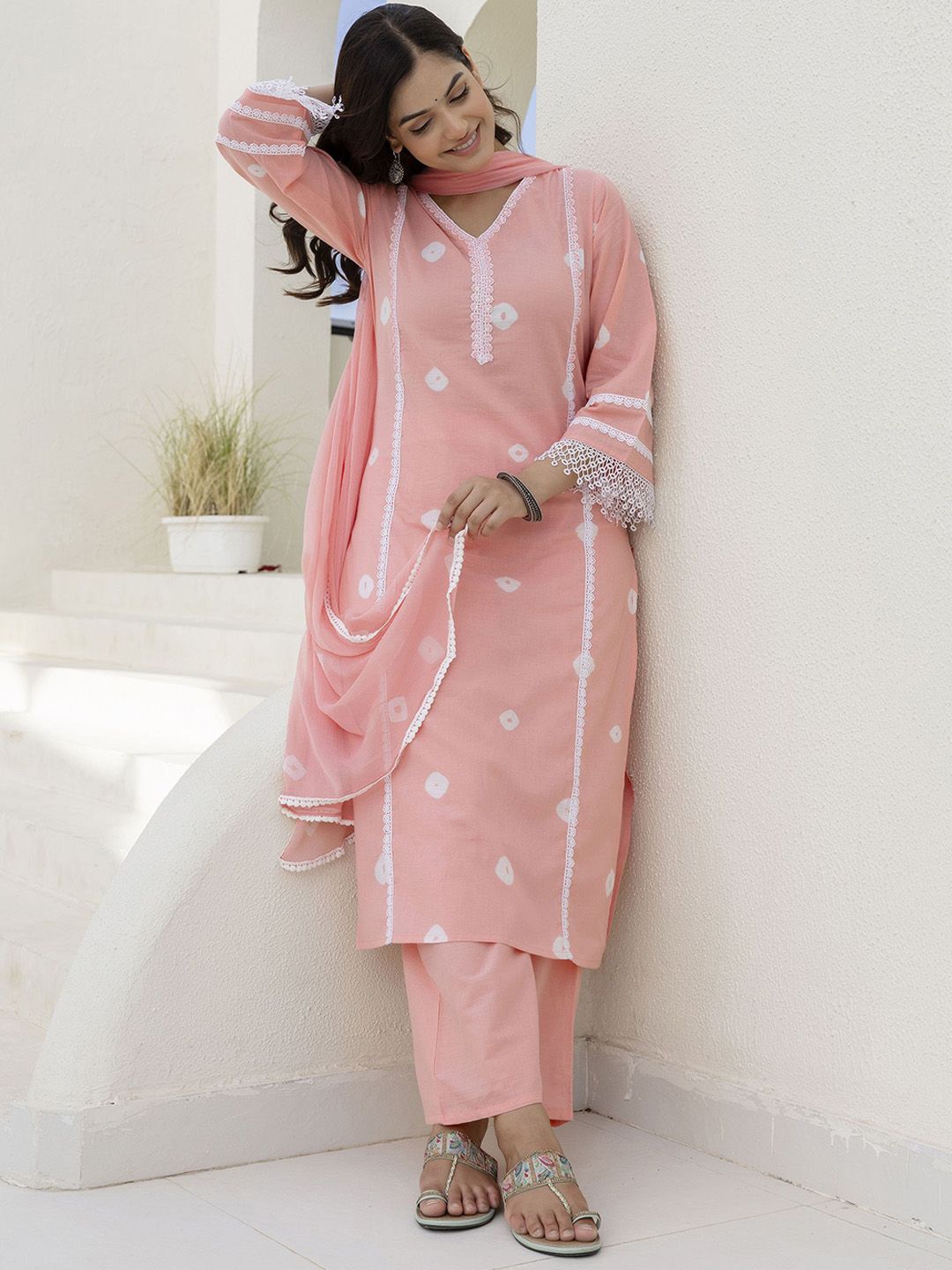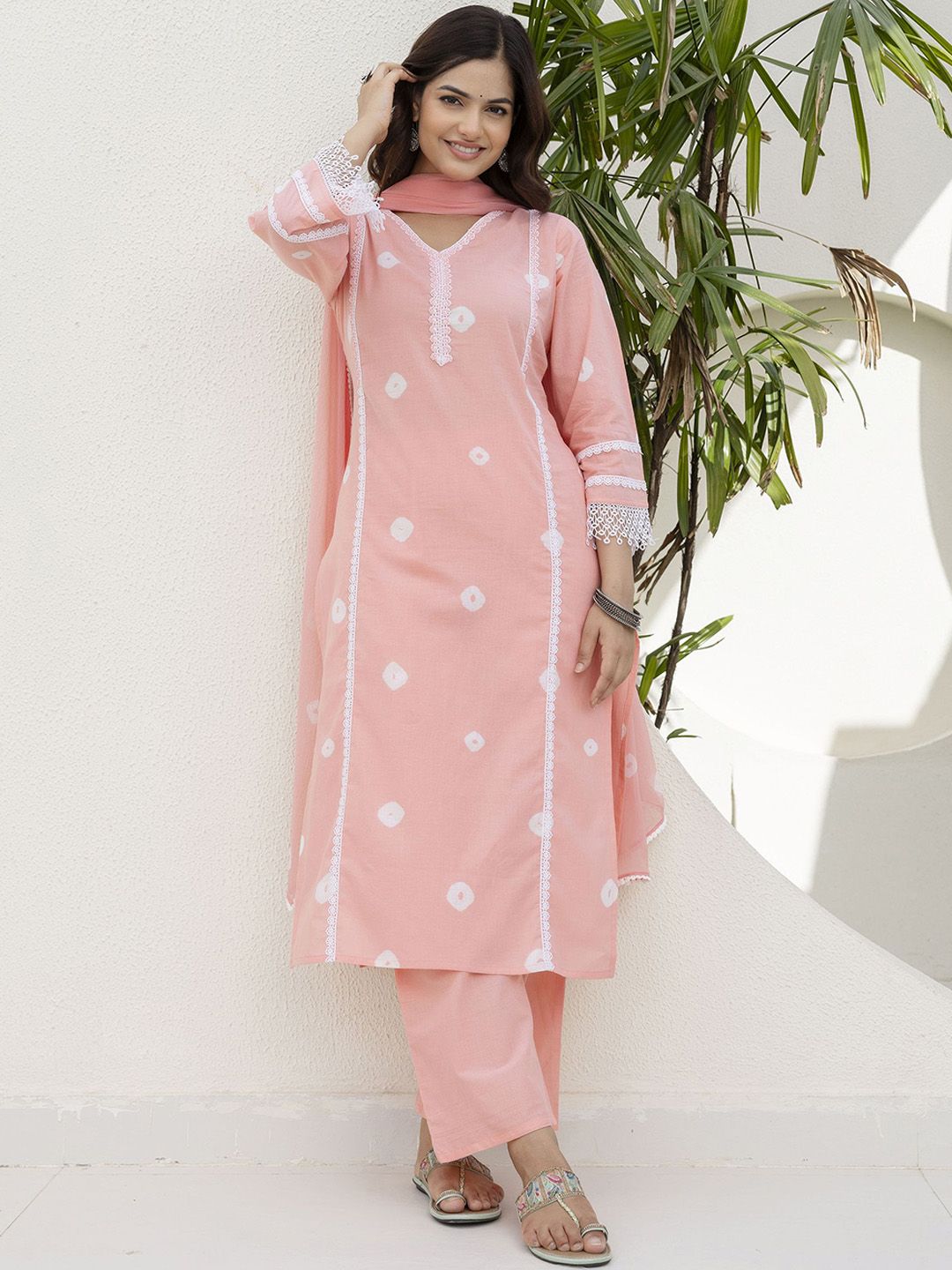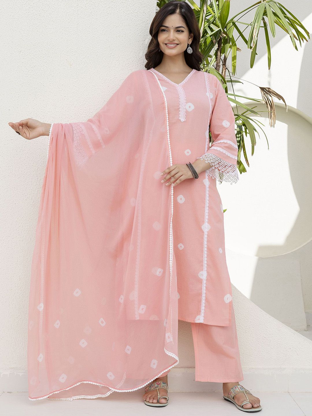 Anouk Women Bandhani Yoke Design Cotton Kurta with Palazzos & Dupatta