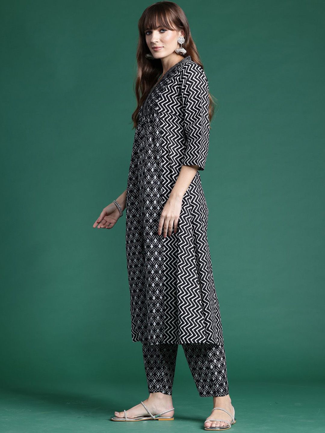 Anouk Women Chevron Striped Cotton A-Line Kurta with Trousers