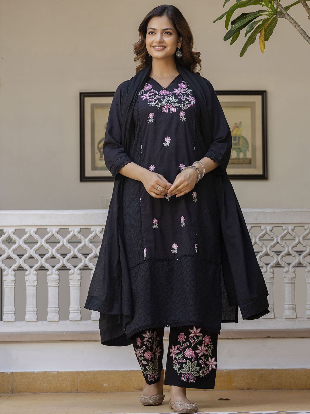 Anouk Women Embroidered Regular Phulkari Pure Cotton Kurta with Pyjamas & With Dupatta