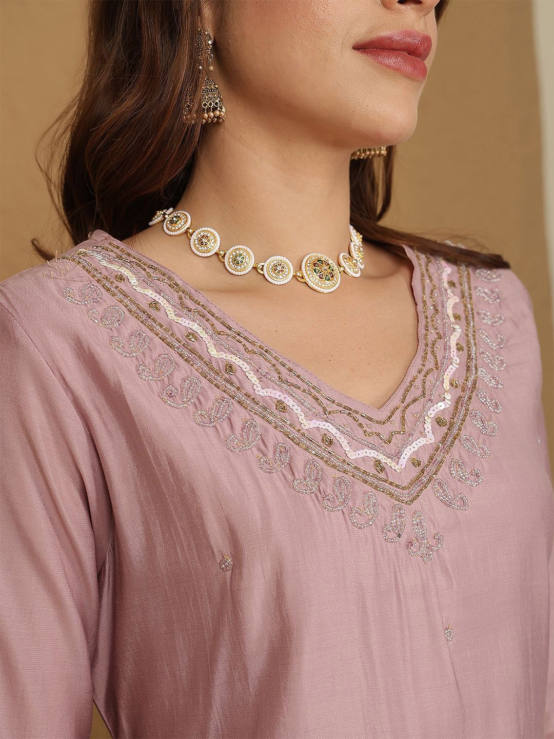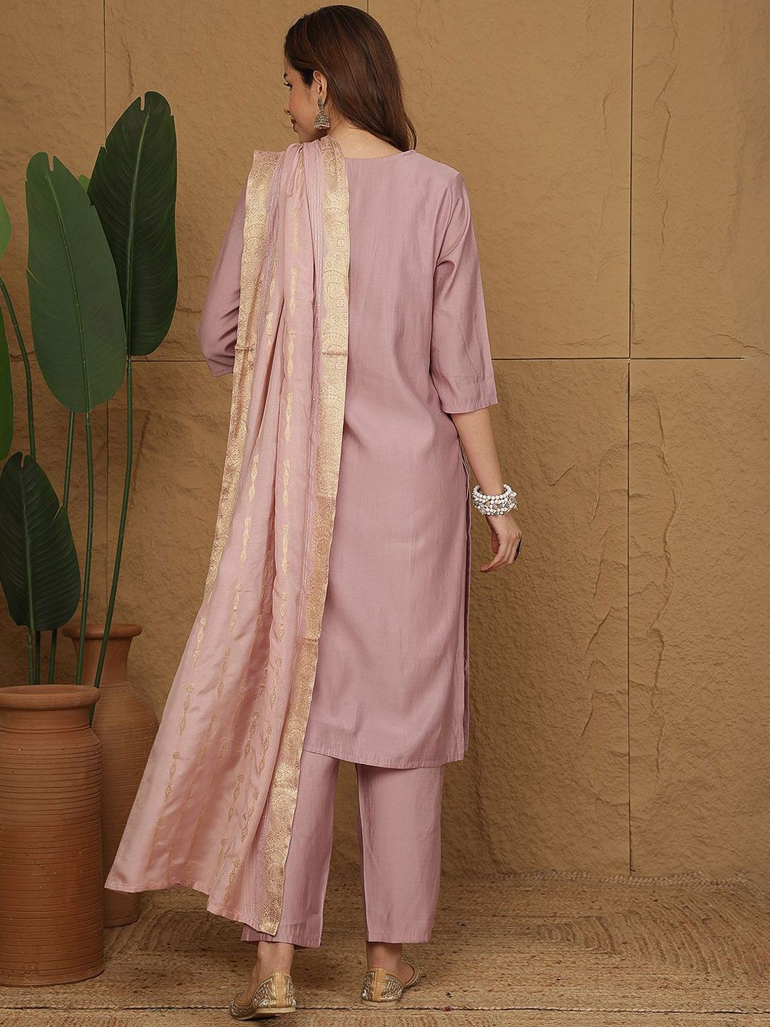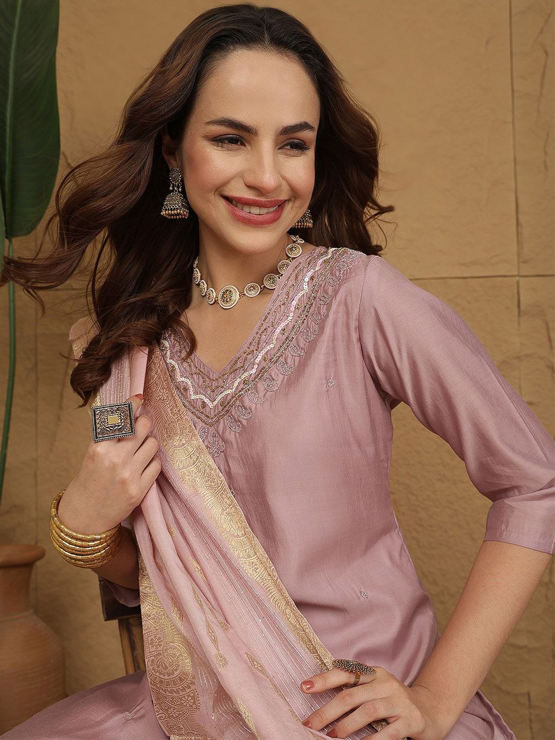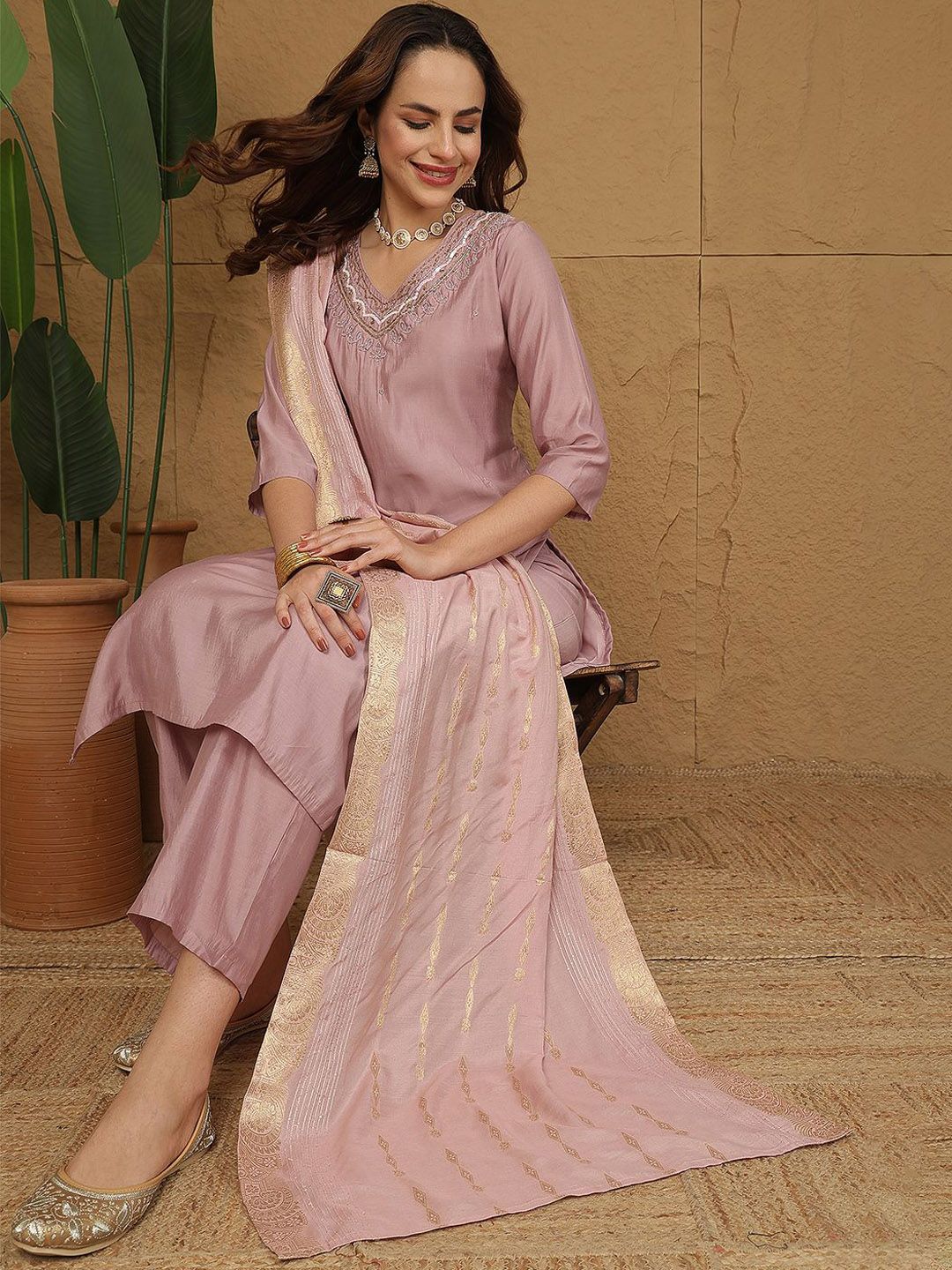 Anouk Women Embroidered Regular Sequinned Kurta with Trousers & Dupatta