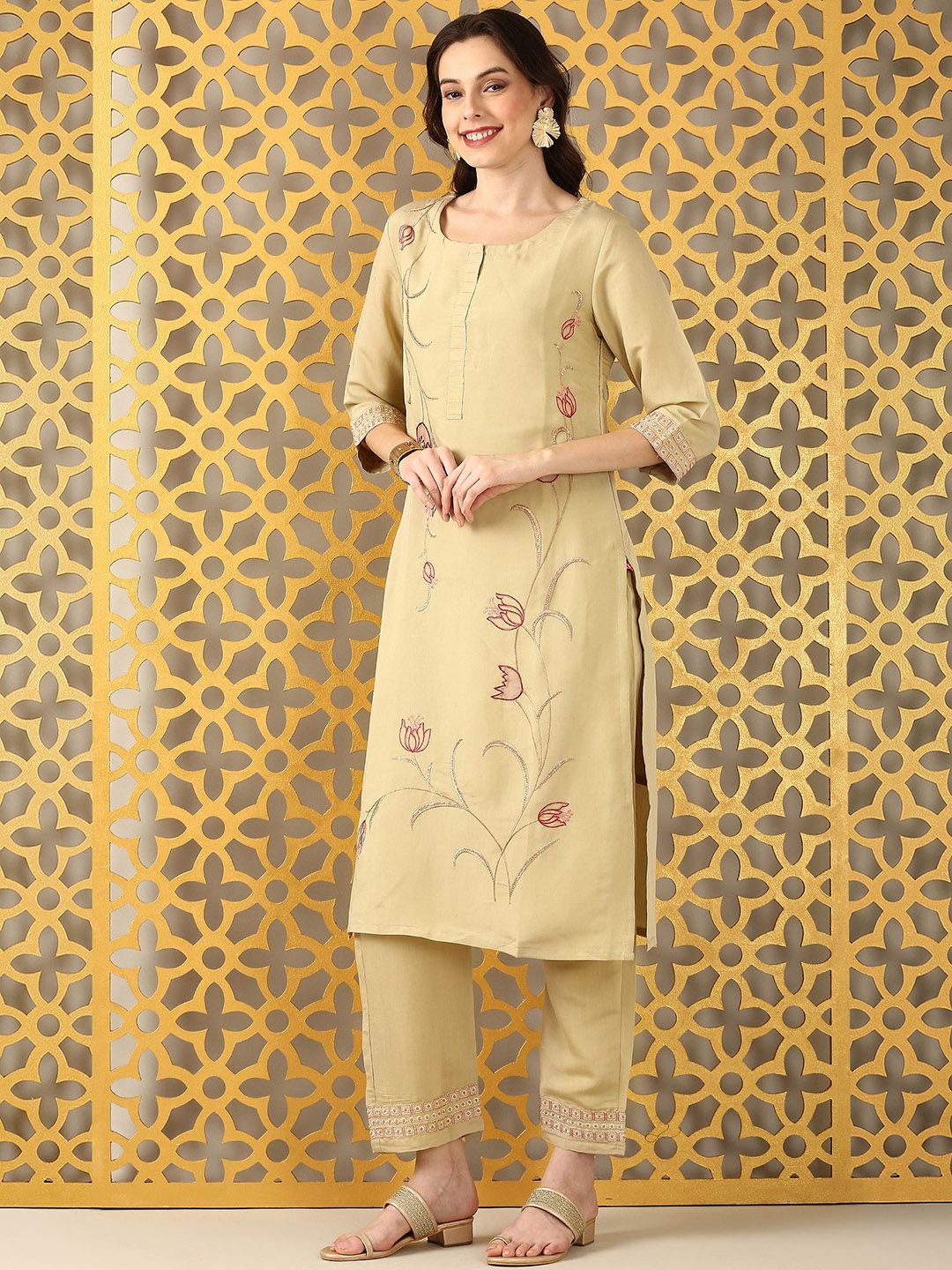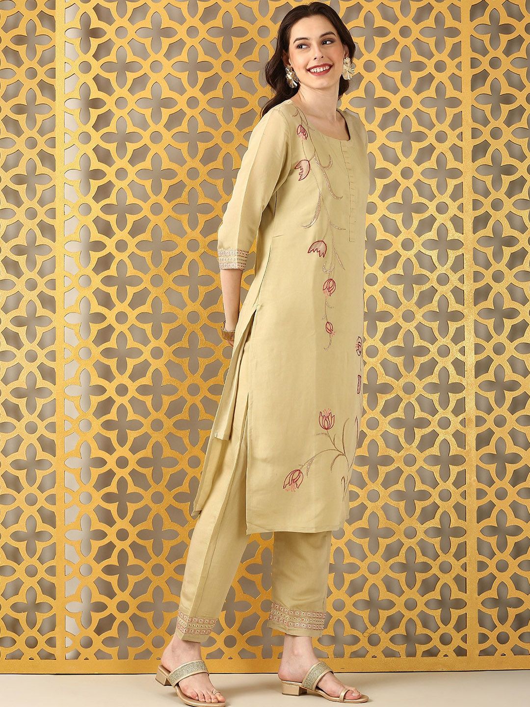 Anouk Women Ethnic Motifs Embroidered Kurta with Trousers & Dupatta