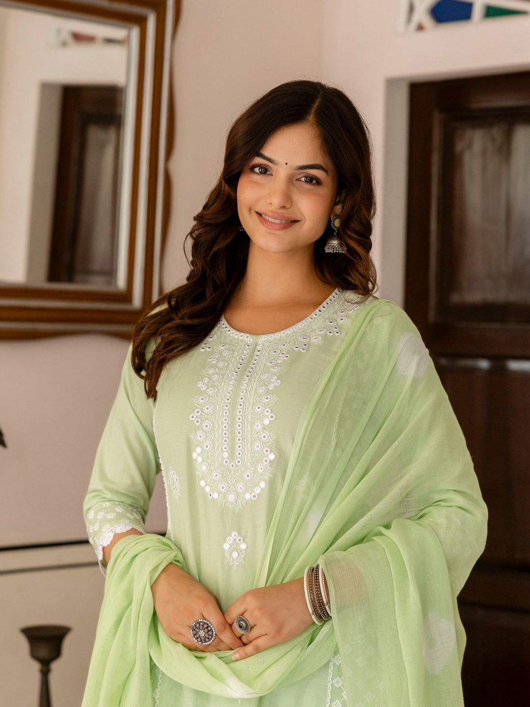 Anouk Women Ethnic Motifs Embroidered Mirror Work Pure Cotton Kurta Set with Dupatta