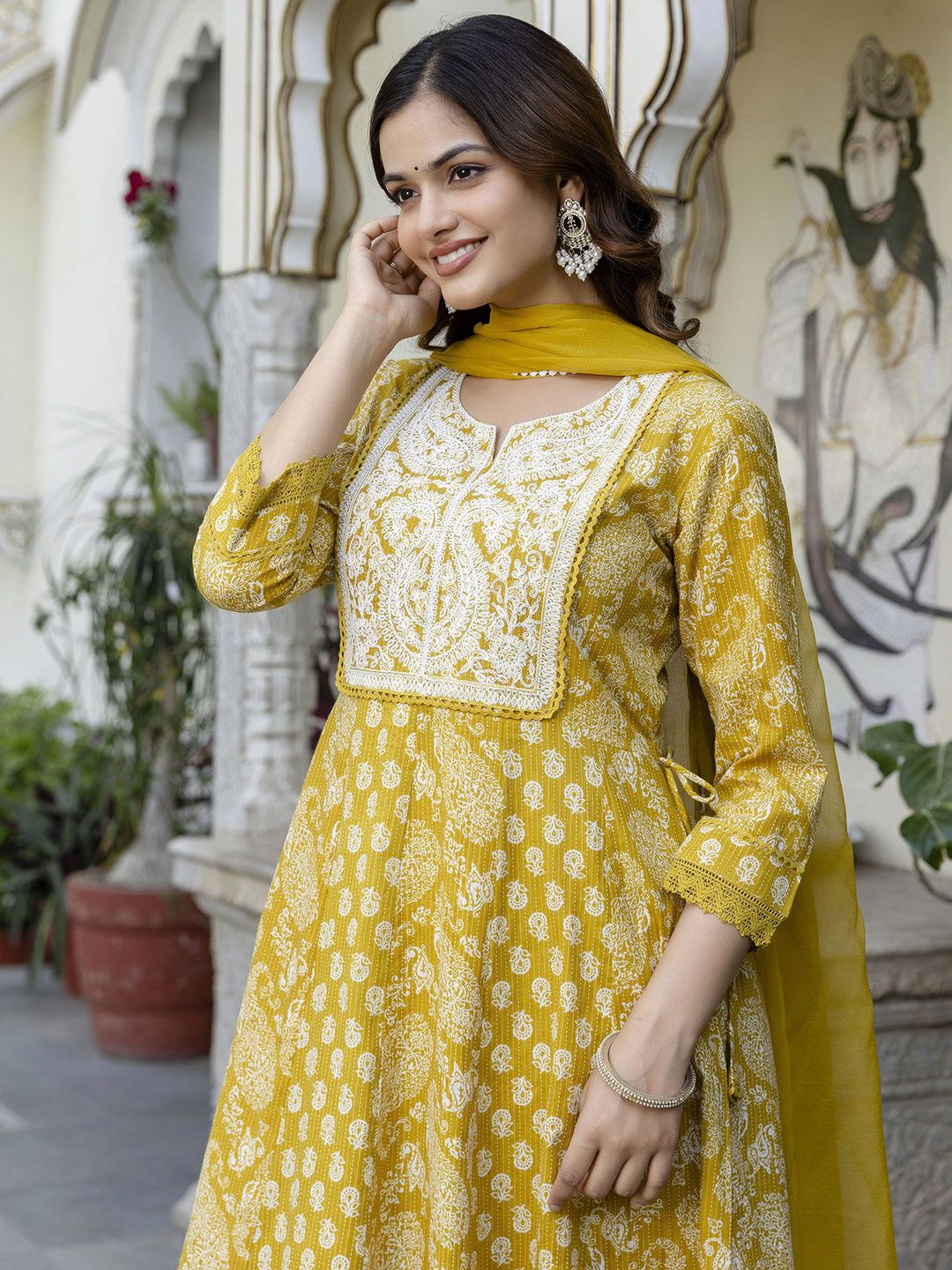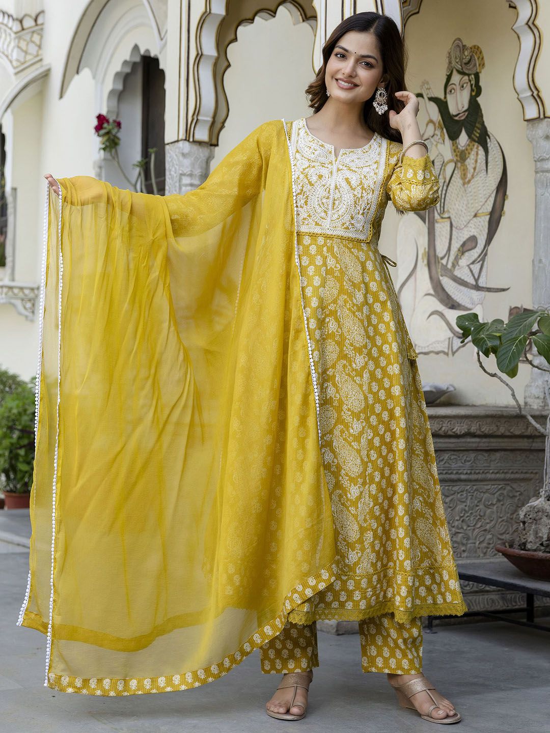 Anouk Women Ethnic Motifs Embroidered Pure Cotton Anarkali Kurta with Trousers & Dupatta