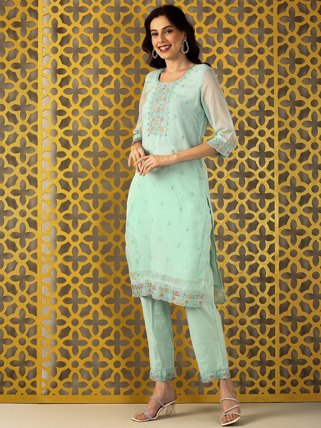 Anouk Women Ethnic Motifs Embroidered Regular Kurta with Trousers & Dupatta