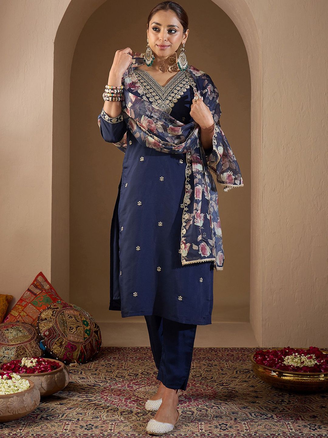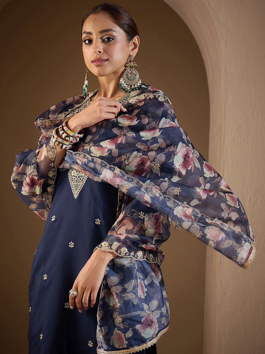 Anouk Women Ethnic Motifs Embroidered Regular Straight Kurta with Trousers & With Dupatta