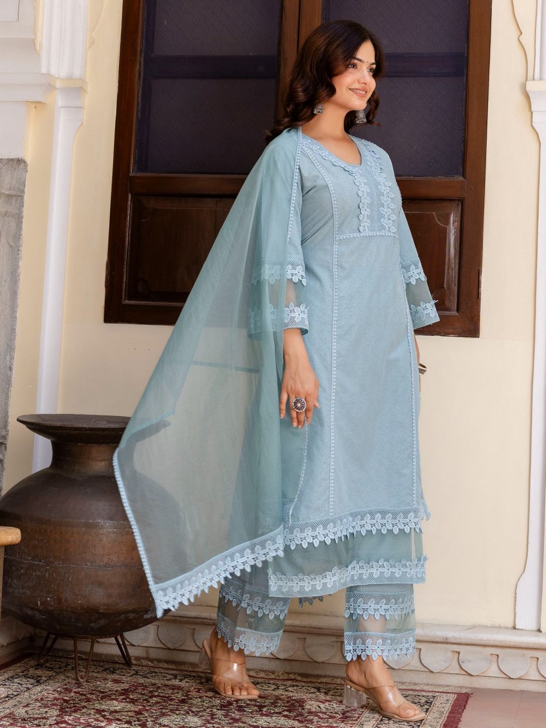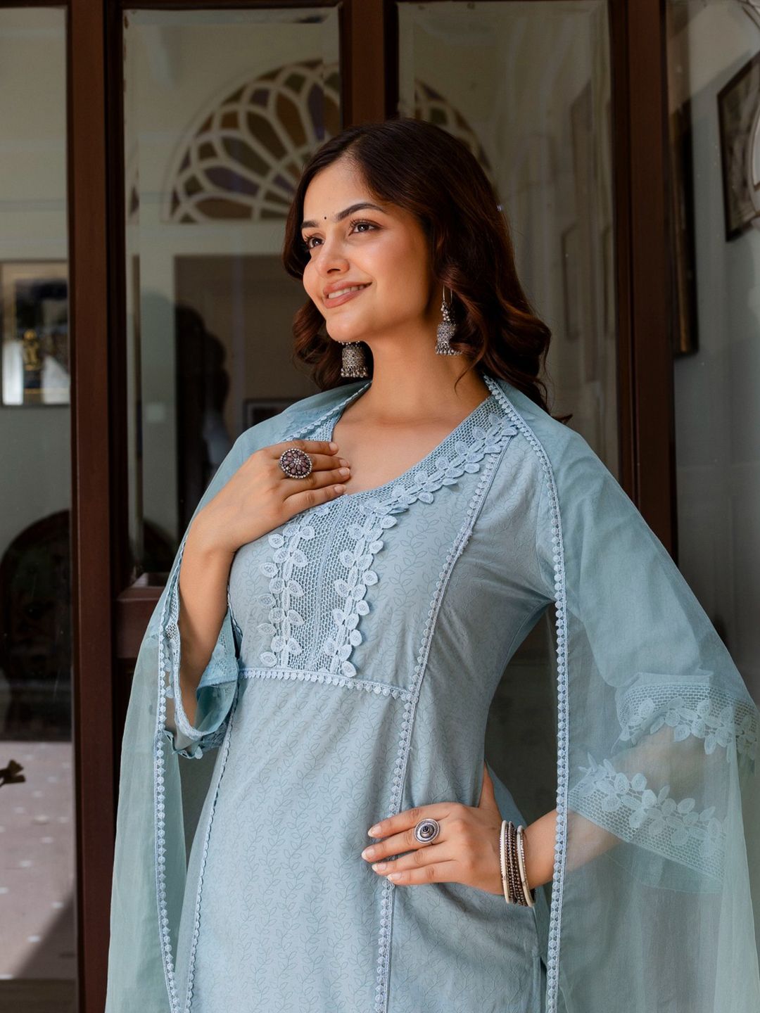 Anouk Women Ethnic Motifs Embroidered Regular Thread Work Pure Cotton Kurta Set & Dupatta