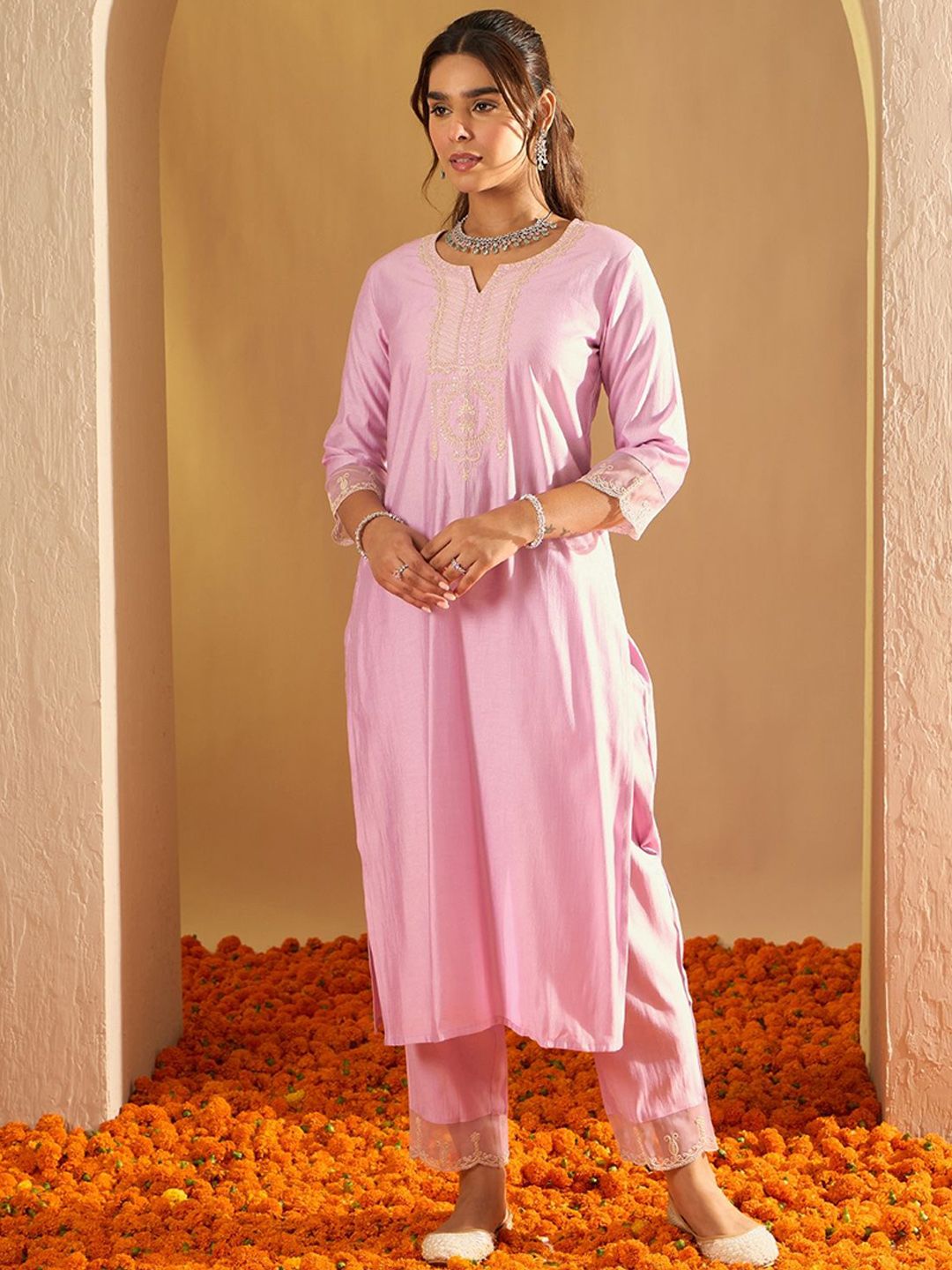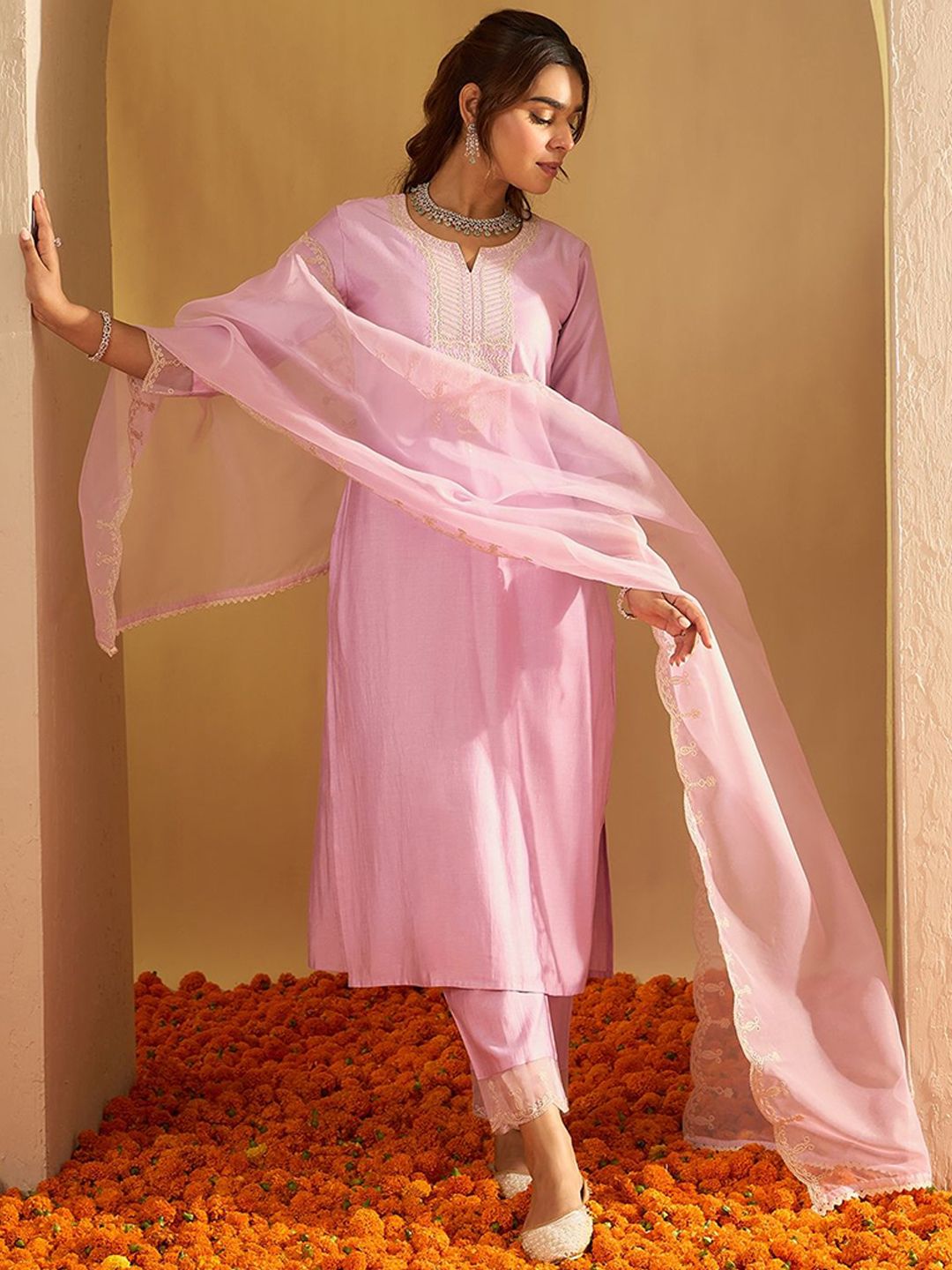 Buy this stylish Anouk Women Ethnic Motifs Embroidered Thread Work Liva Kurta with Trousers & Dupatta at Marincart Nepal. This product offers great quality and value. Perfect for those looking for the latest trends in fashion. Get yours now at unbeatable prices.