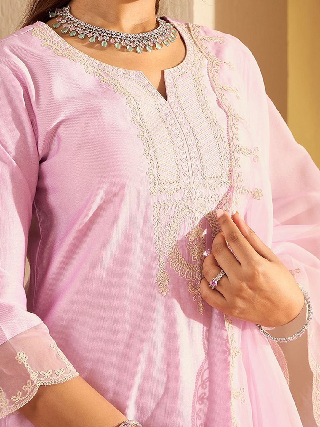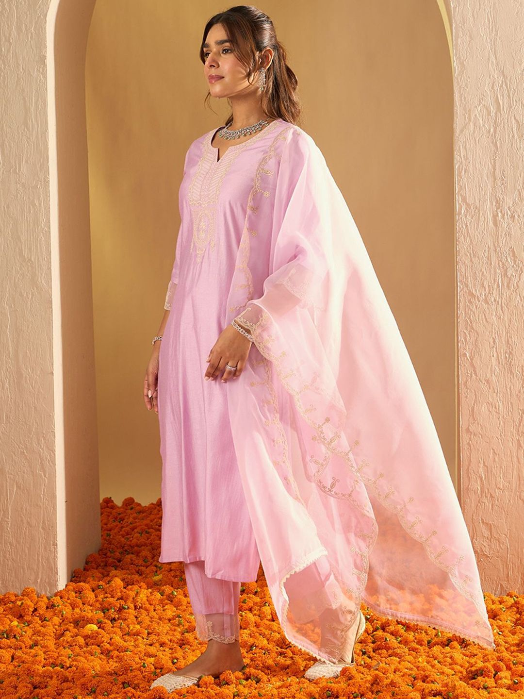 Anouk Women Ethnic Motifs Embroidered Thread Work Liva Kurta with Trousers & Dupatta